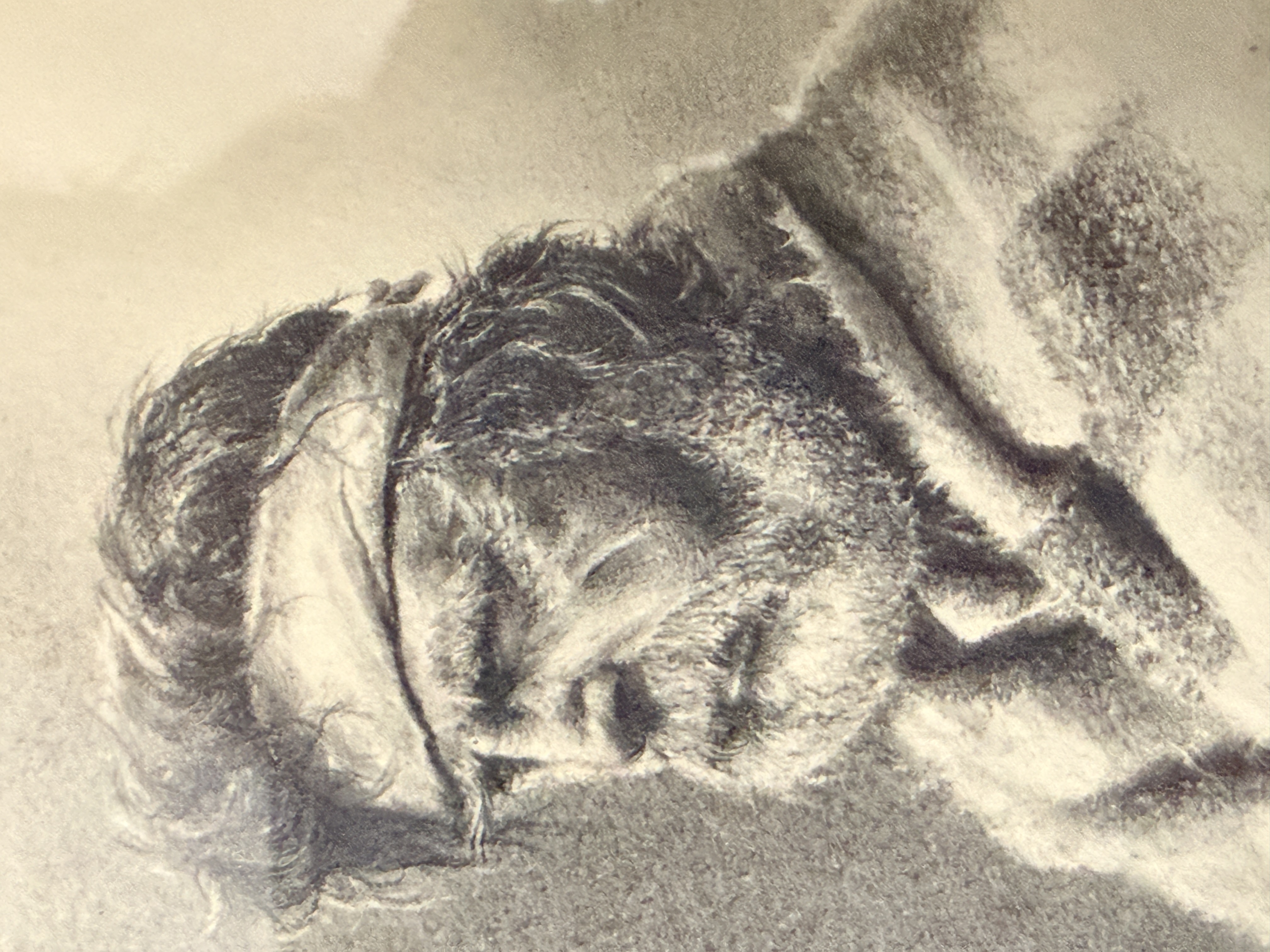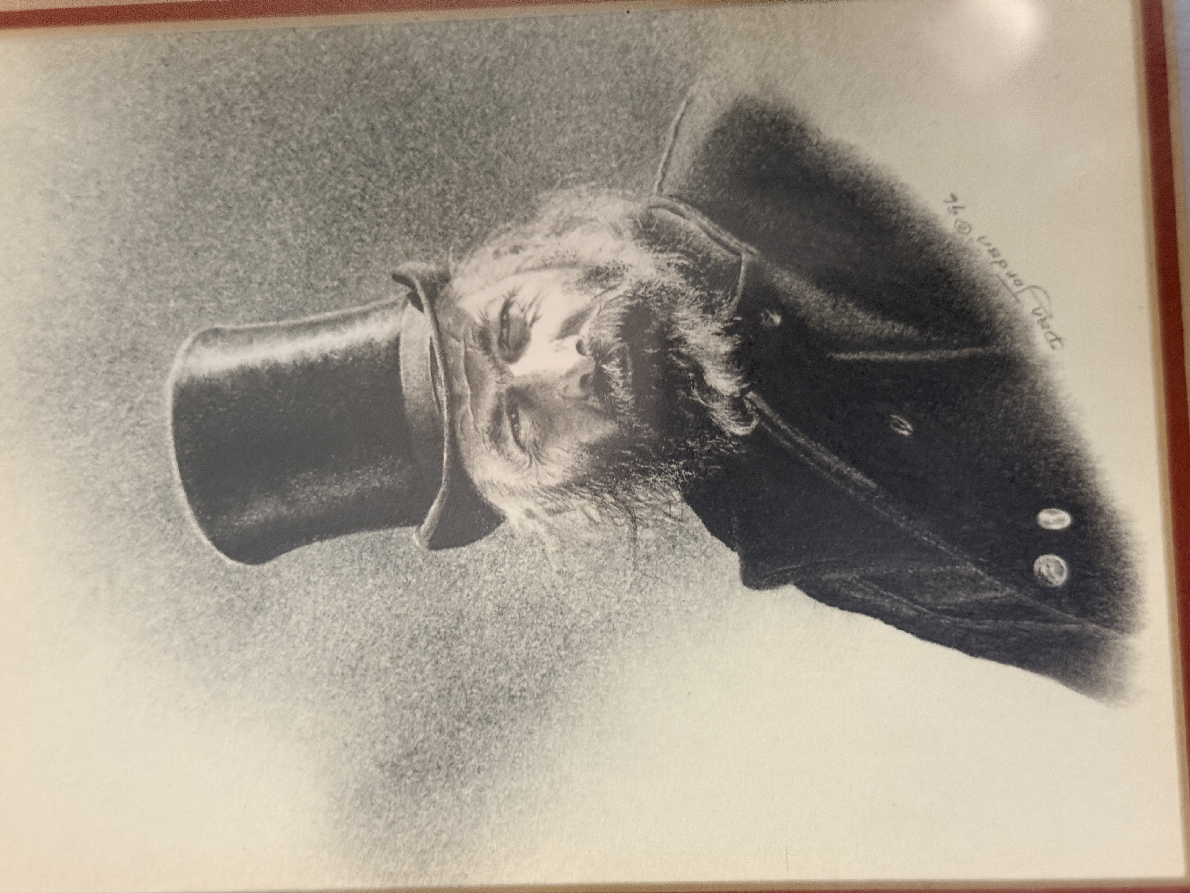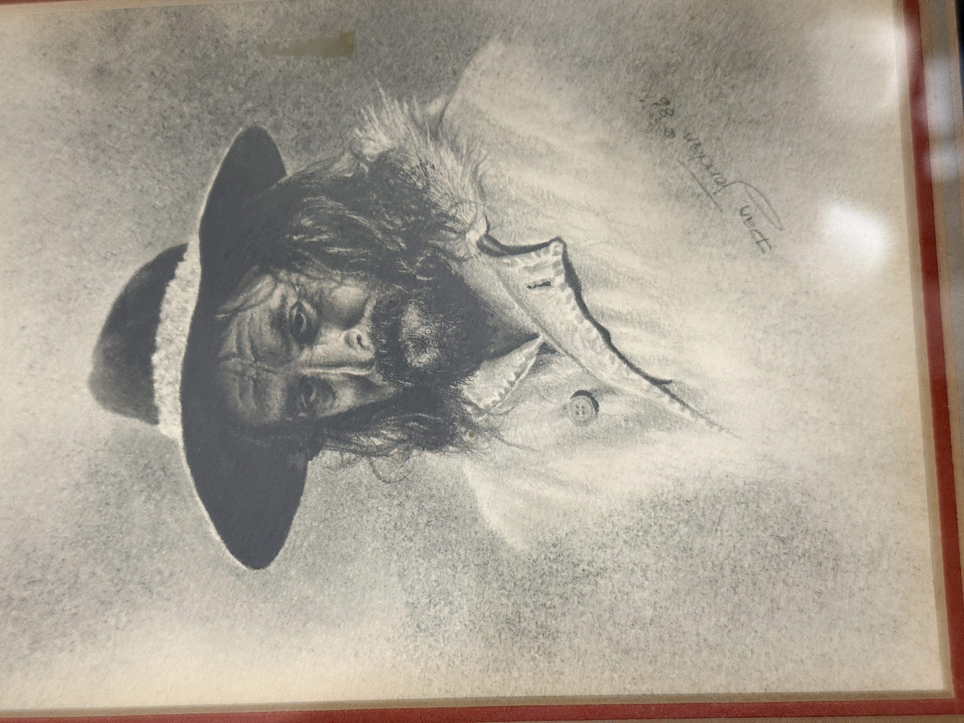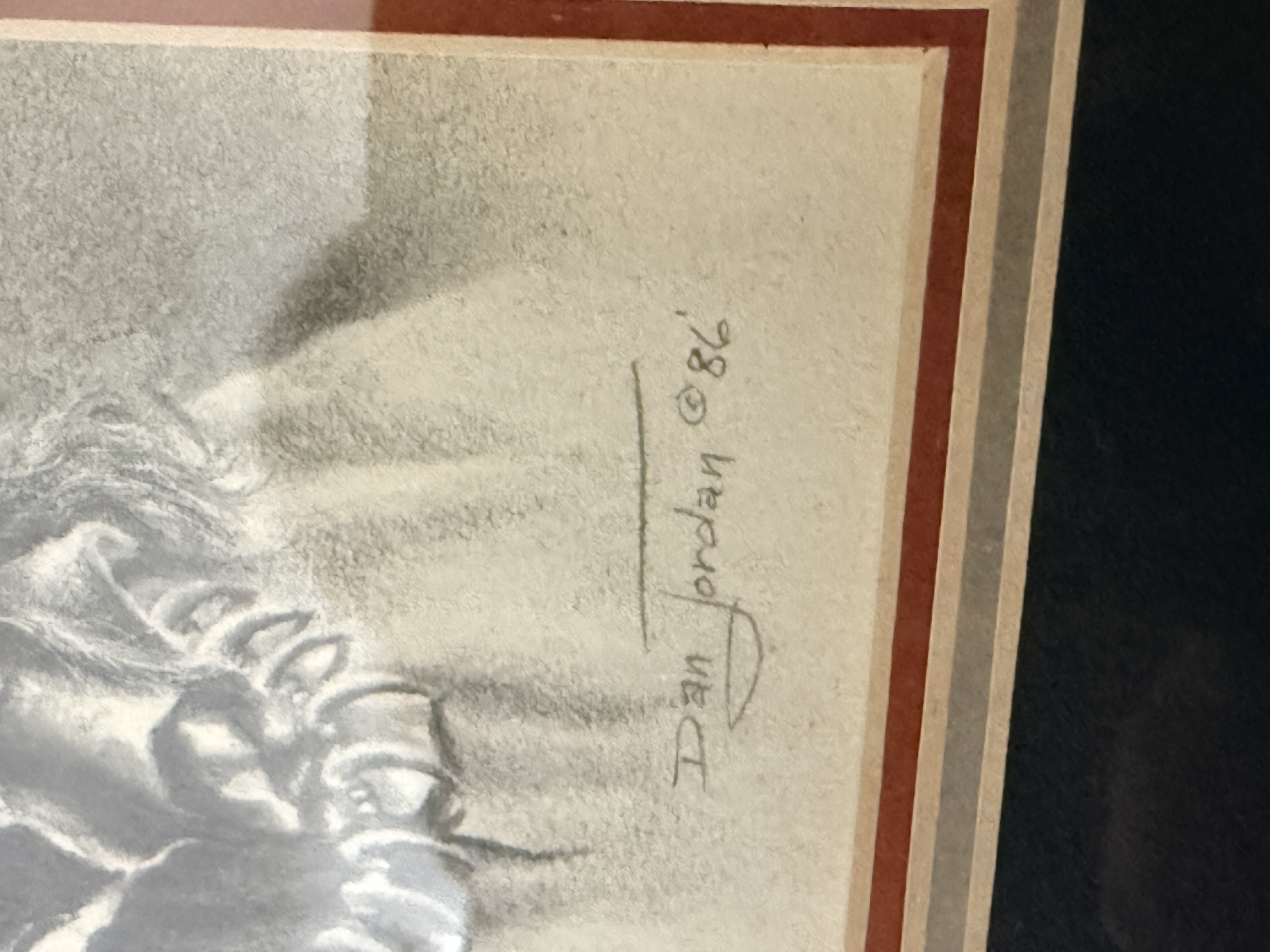 The collection is in good overall condition. The drawings and mats appear well-preserved under glass. The wood frames show minor surface wear and light scuffing consistent with age. The paper dust covers on the reverse of the frames exhibit some minor tearing and shelf wear. Art is from a clean smoke free home.