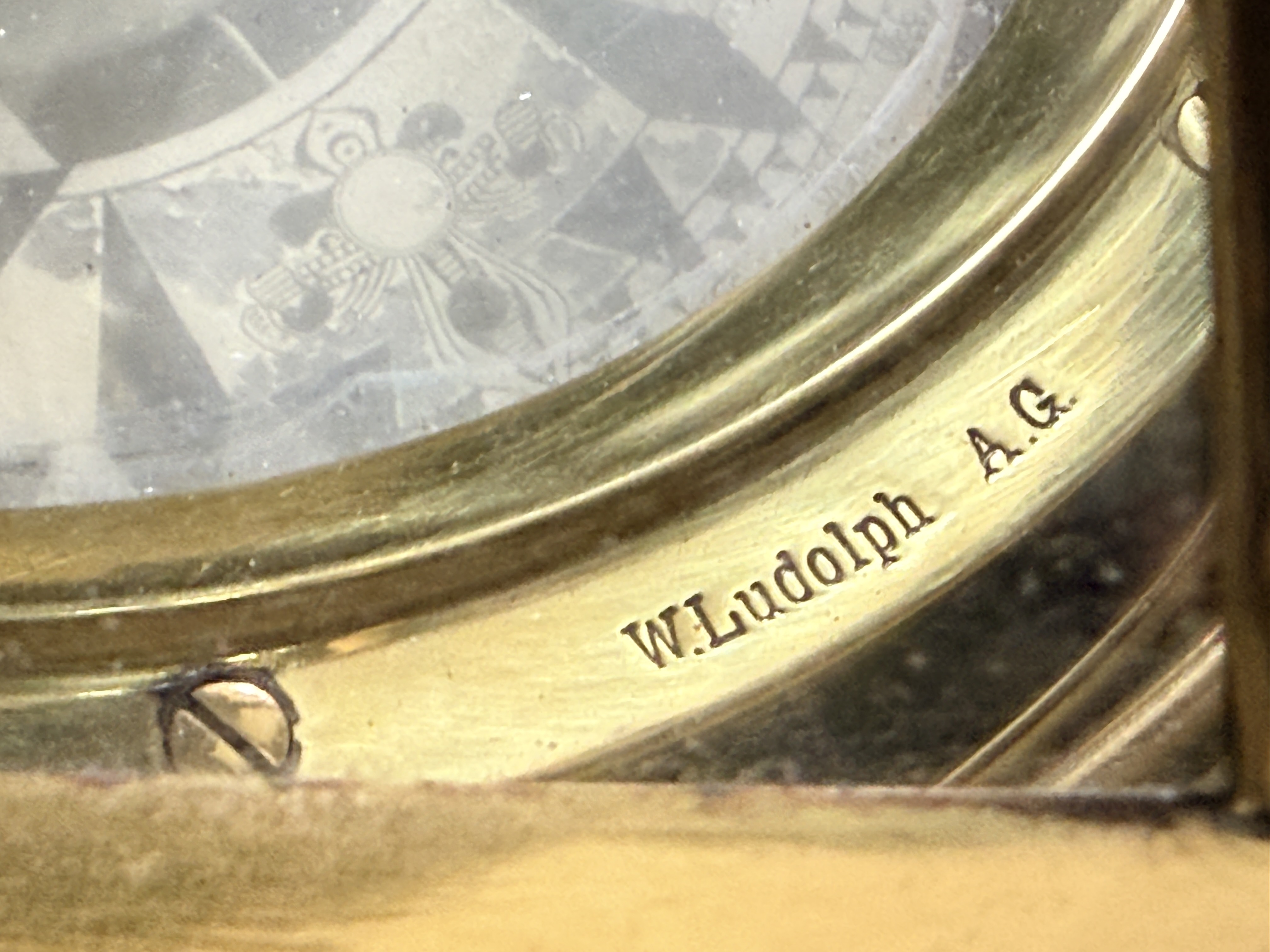 This yacht binnacle is manufactured by W. Ludolph A.G. of Bremerhaven, Germany. The instrument is constructed of polished brass and features a tapered hood fitted with glass panels. The interior houses a gimballed dry-card compass. The interior rim of the compass housing is stamped with the maker name W. Ludolph A.G. and the serial number B 432. The compass card is printed with cardinal and intercardinal points in German, including N, S, O, and W. The unit stands on a circular flanged base with pre-drilled holes for deck mounting.
