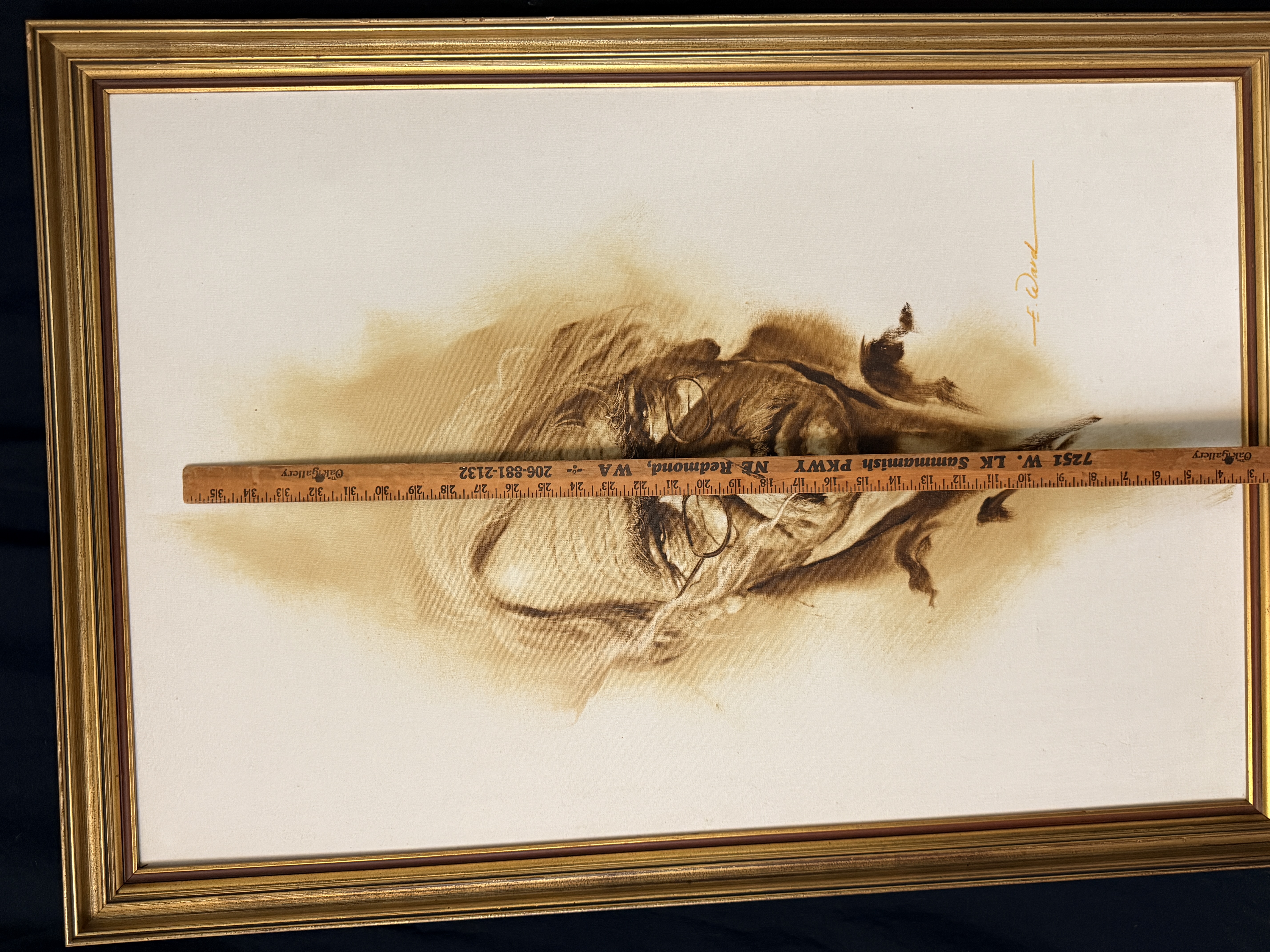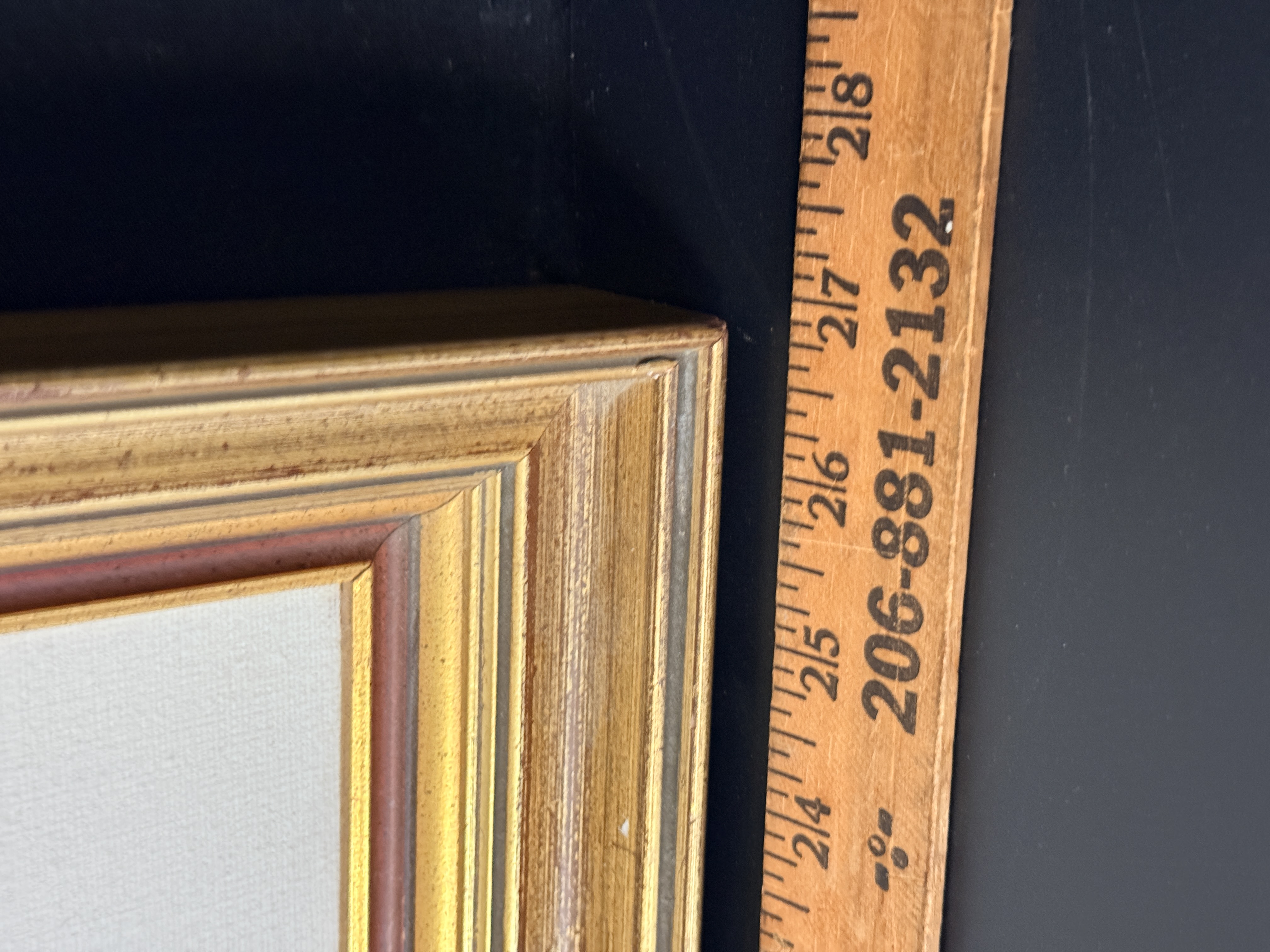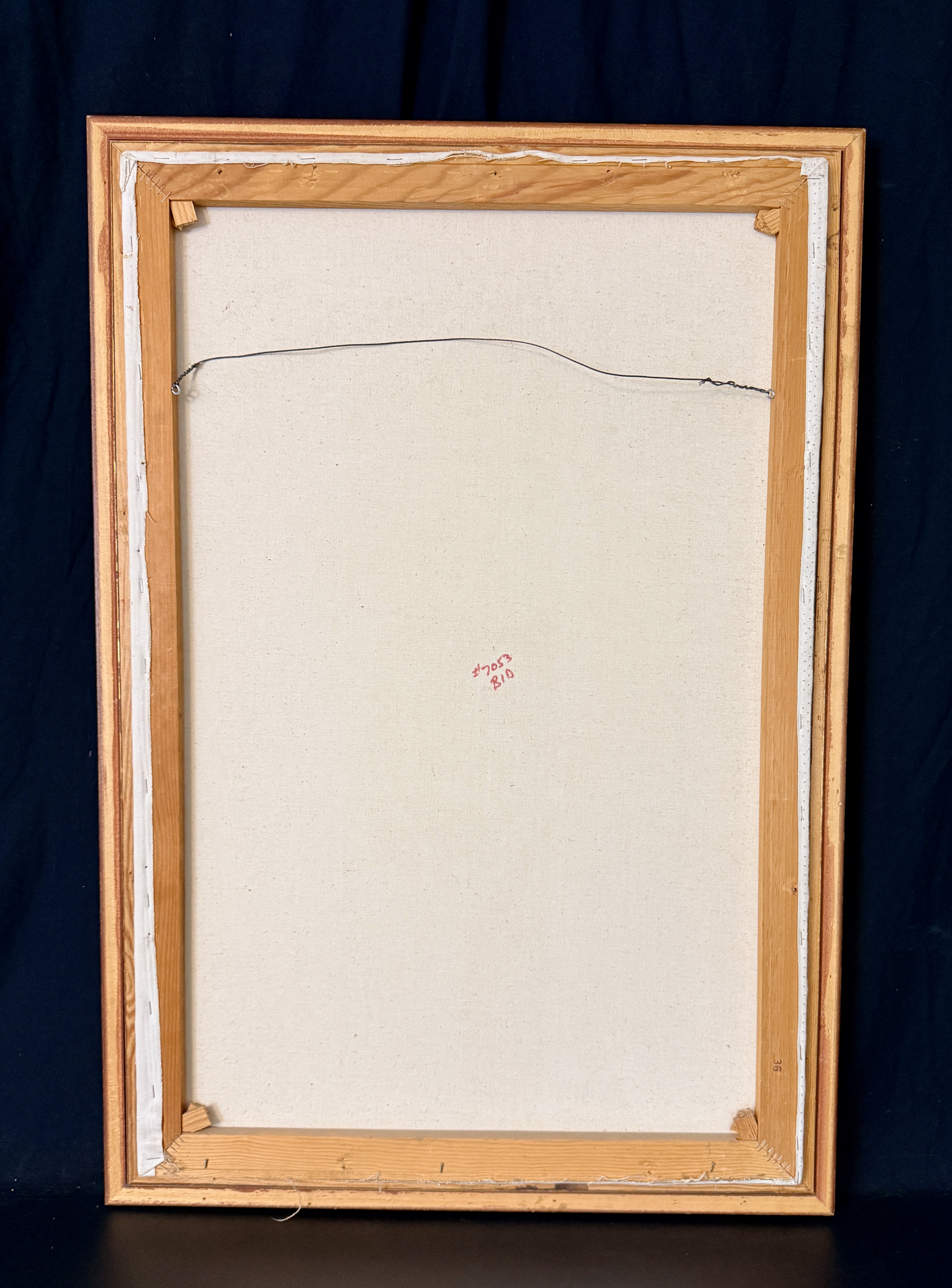 The painting is in good overall condition with some minor surface marks visible under close inspection. The frame exhibits minor wear consistent with age and handling. Art is from a clean smoke free home.