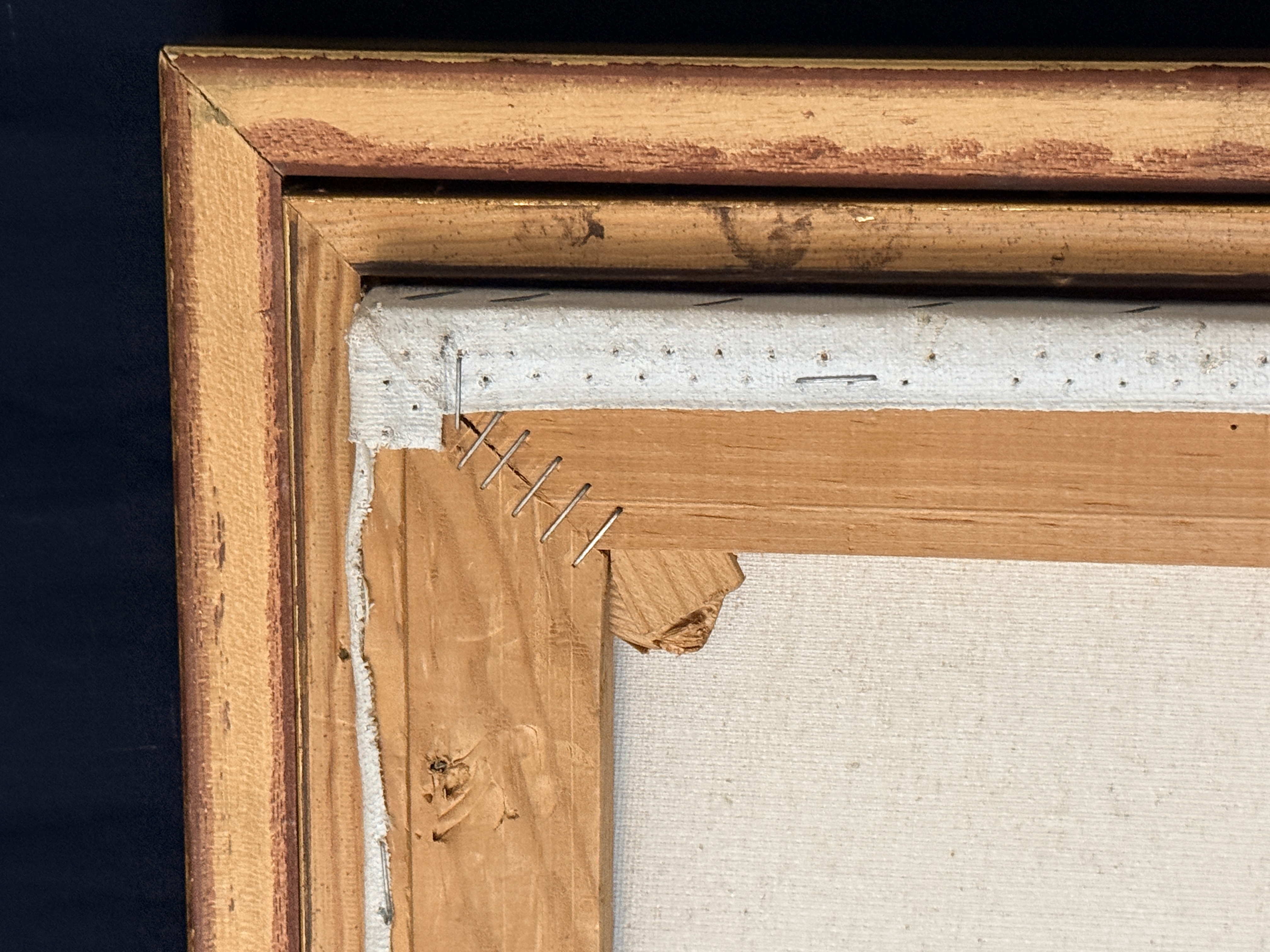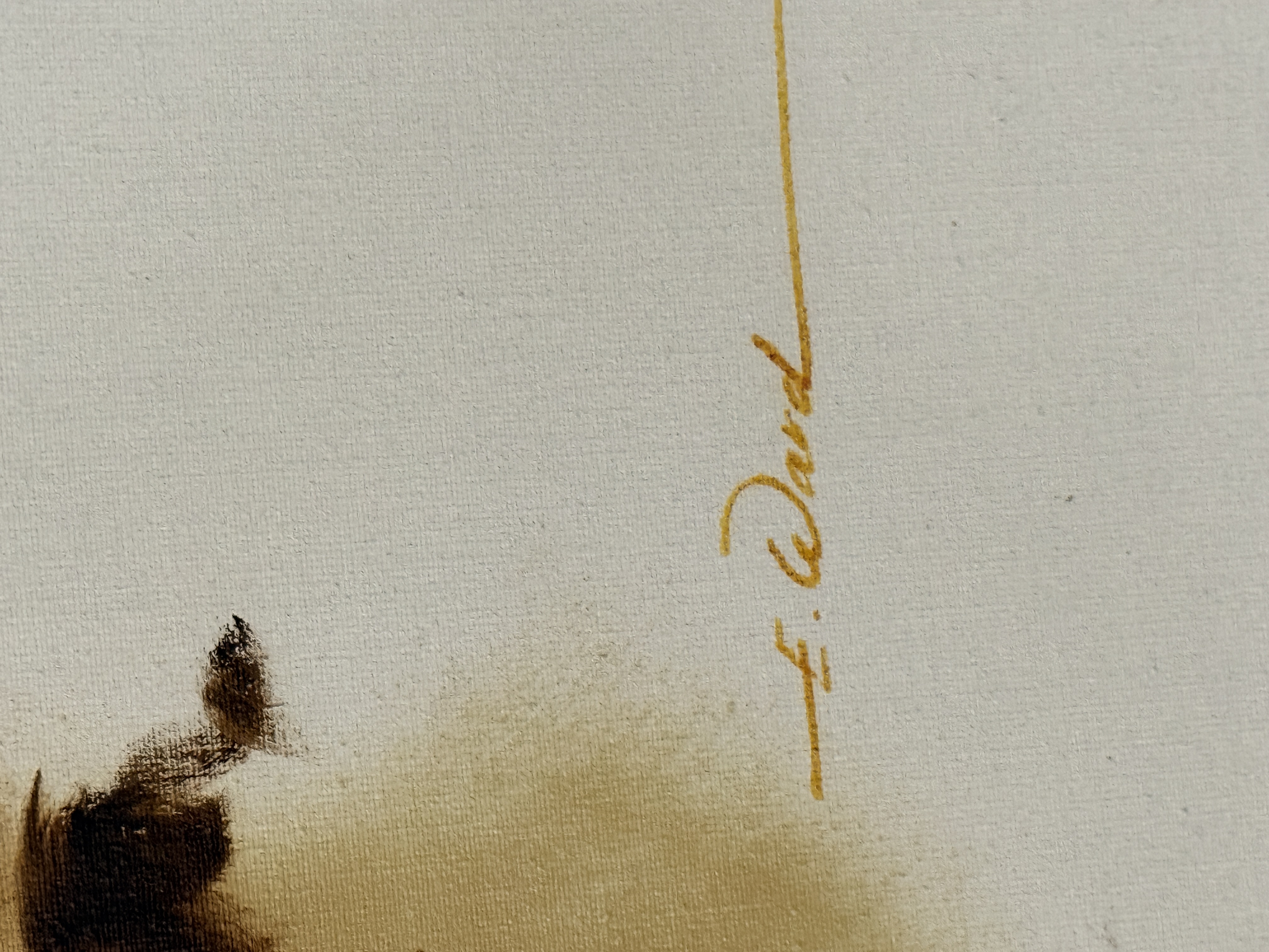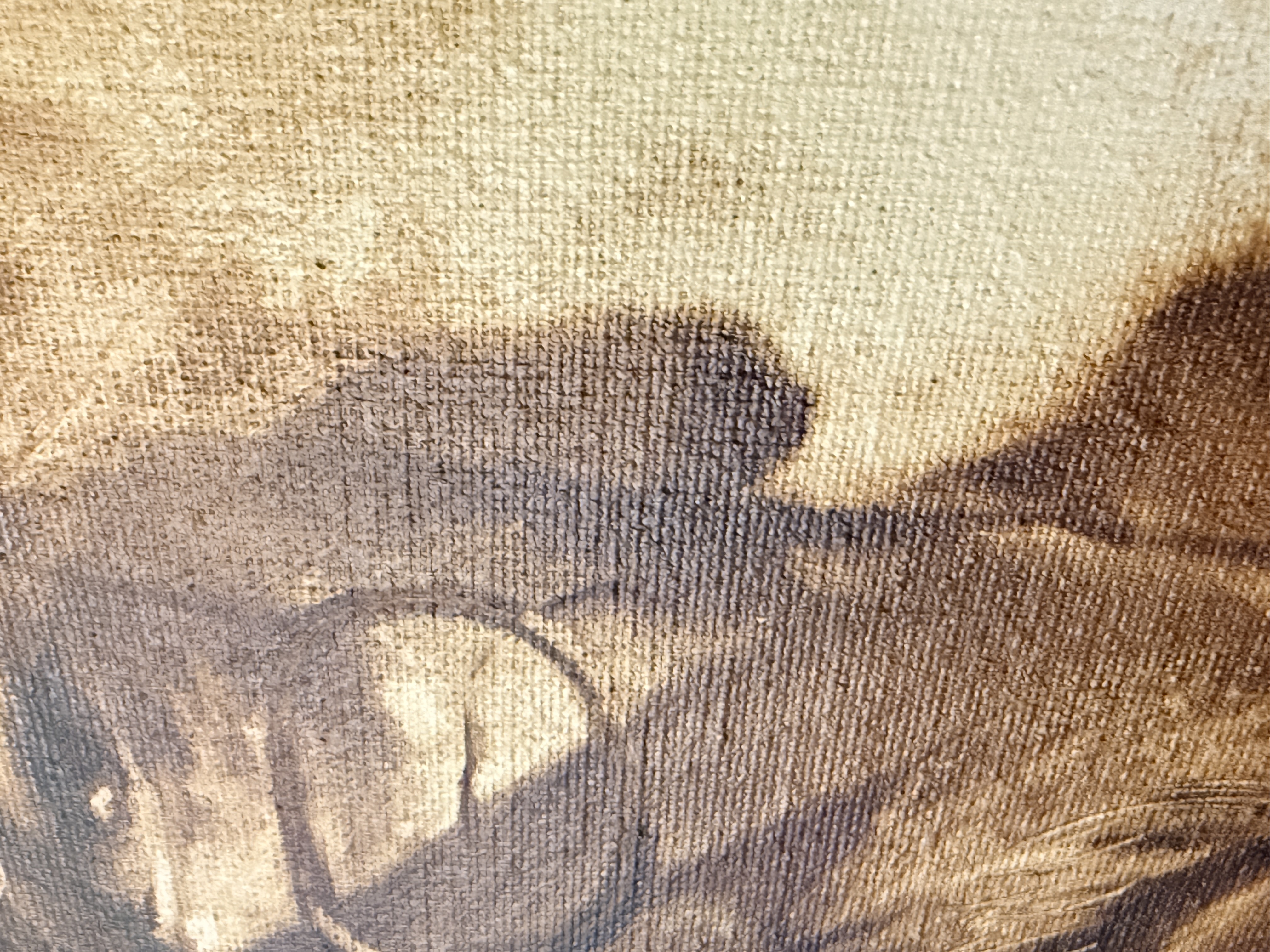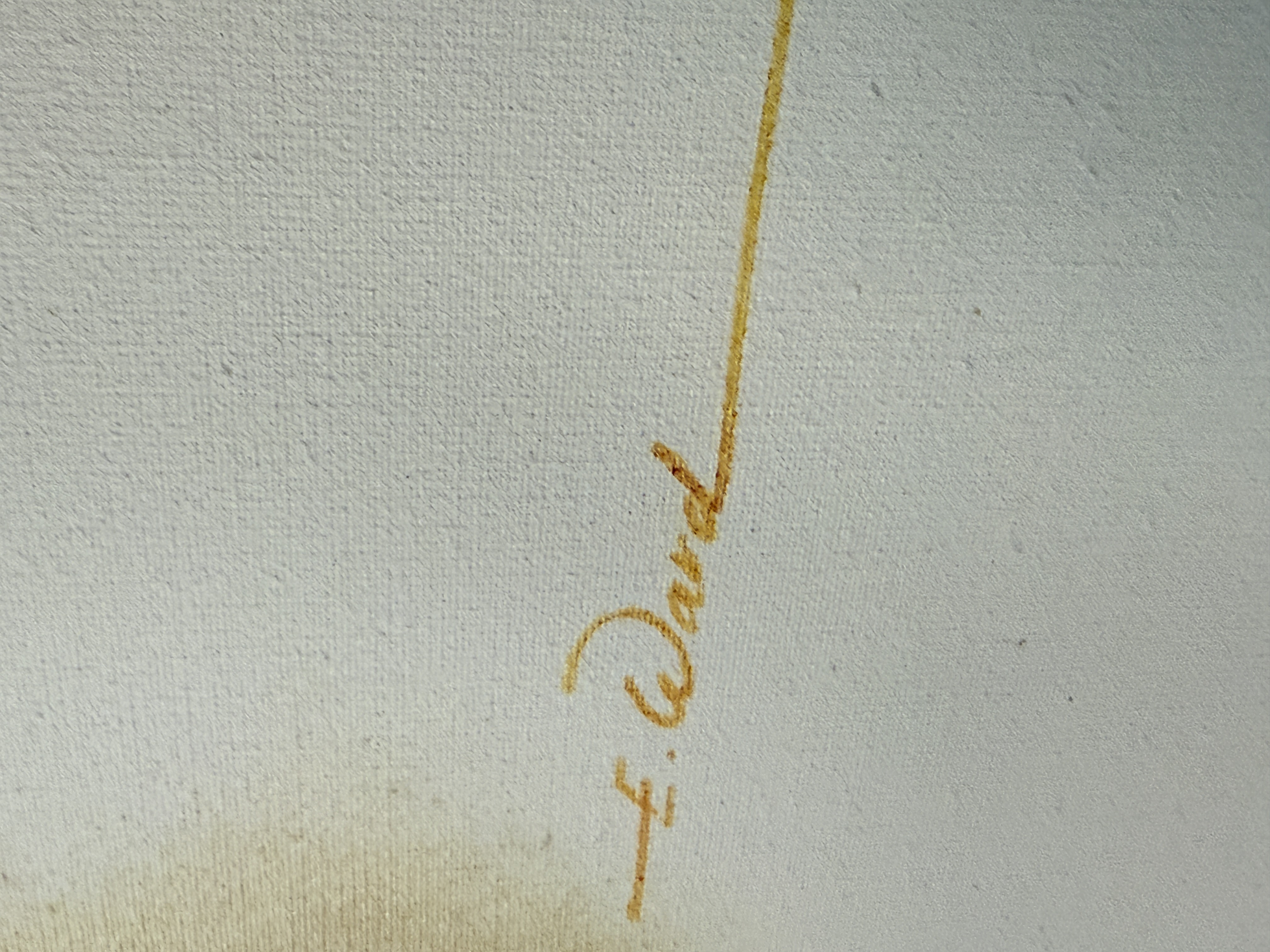 The painting is in good overall condition with some minor surface marks visible under close inspection. The frame exhibits minor wear consistent with age and handling. Art is from a clean smoke free home.