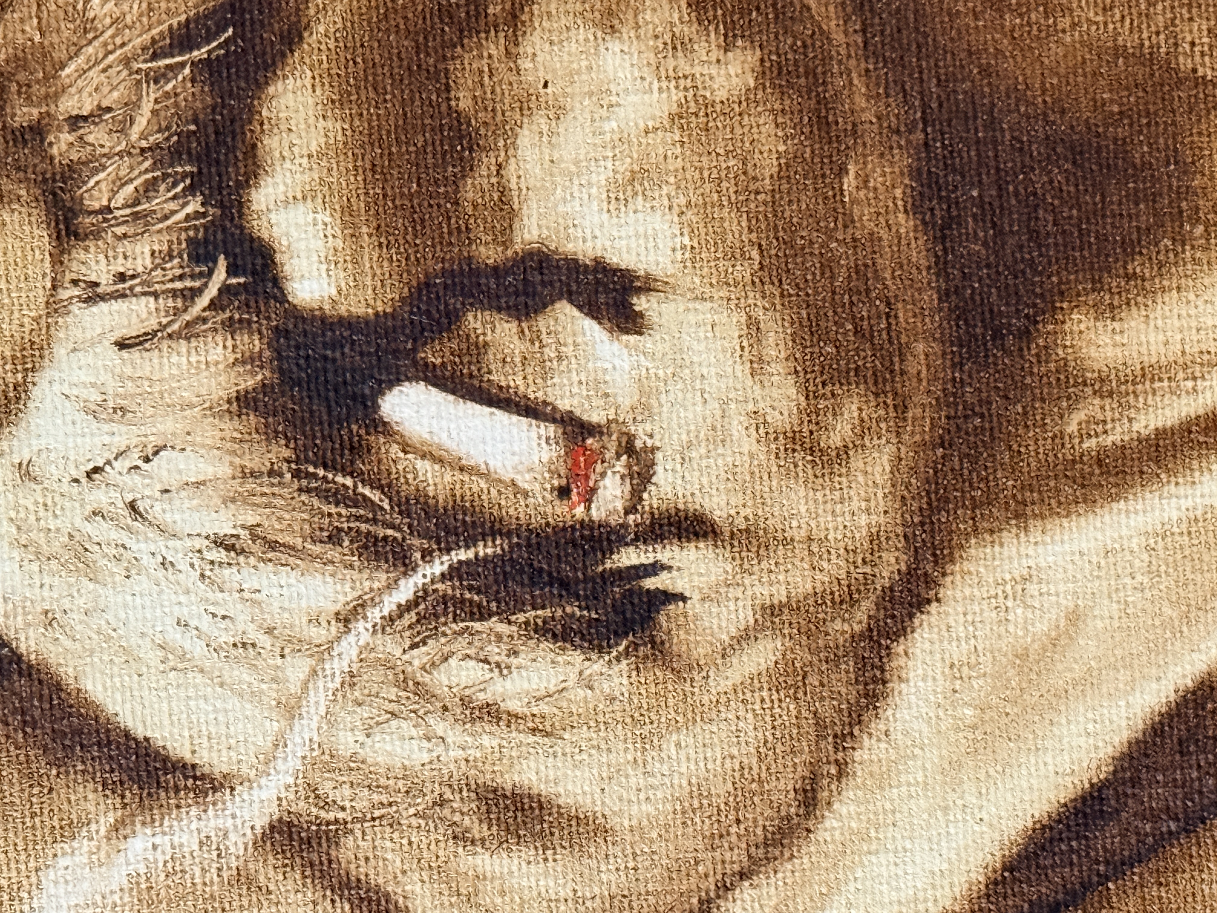 Monochromatic Sepia Portrait of a Man Smoking, Signed E. Ward