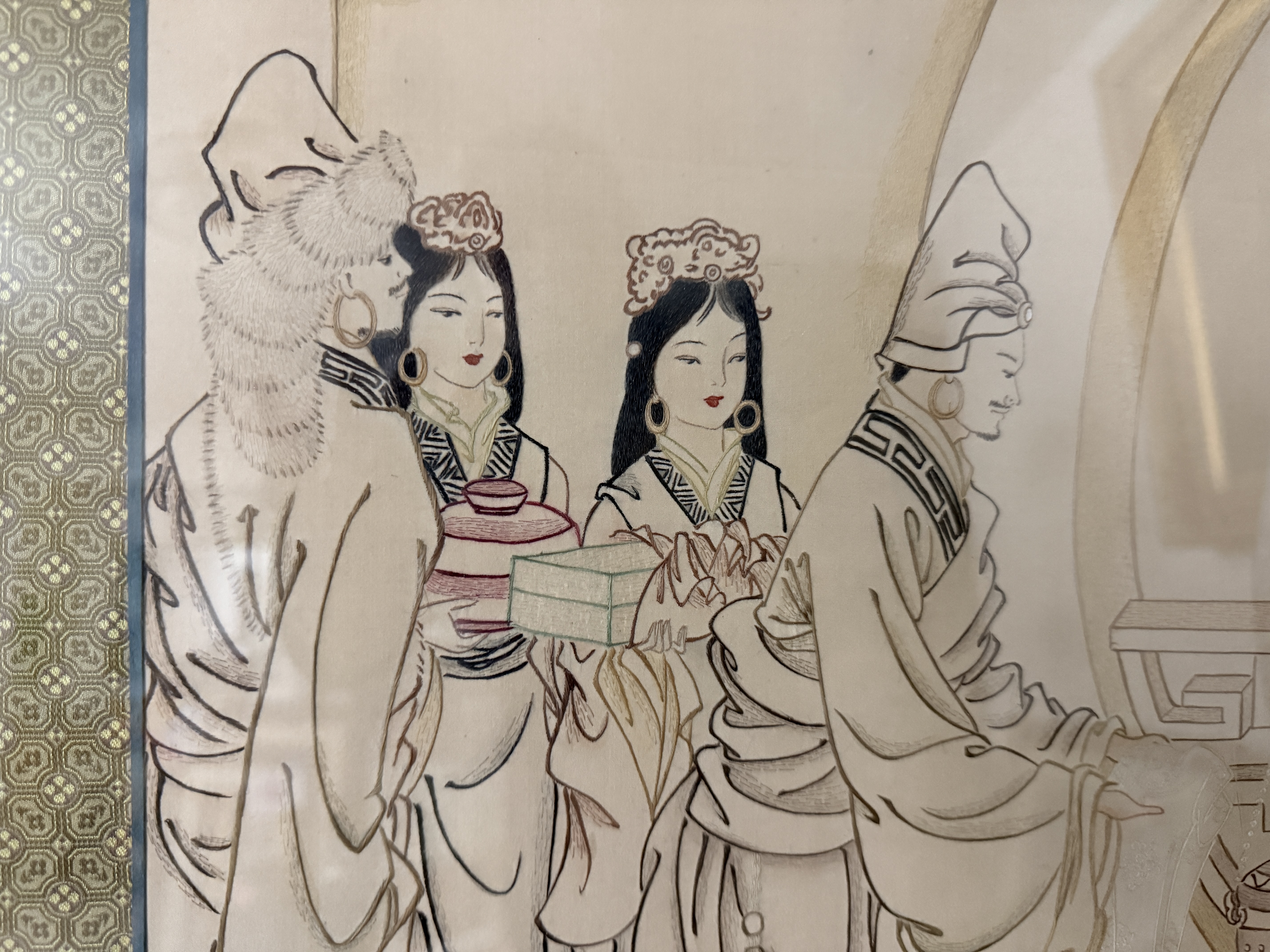 A Framed Chinese Human Hair Embroidery Depicting Princess Wencheng
