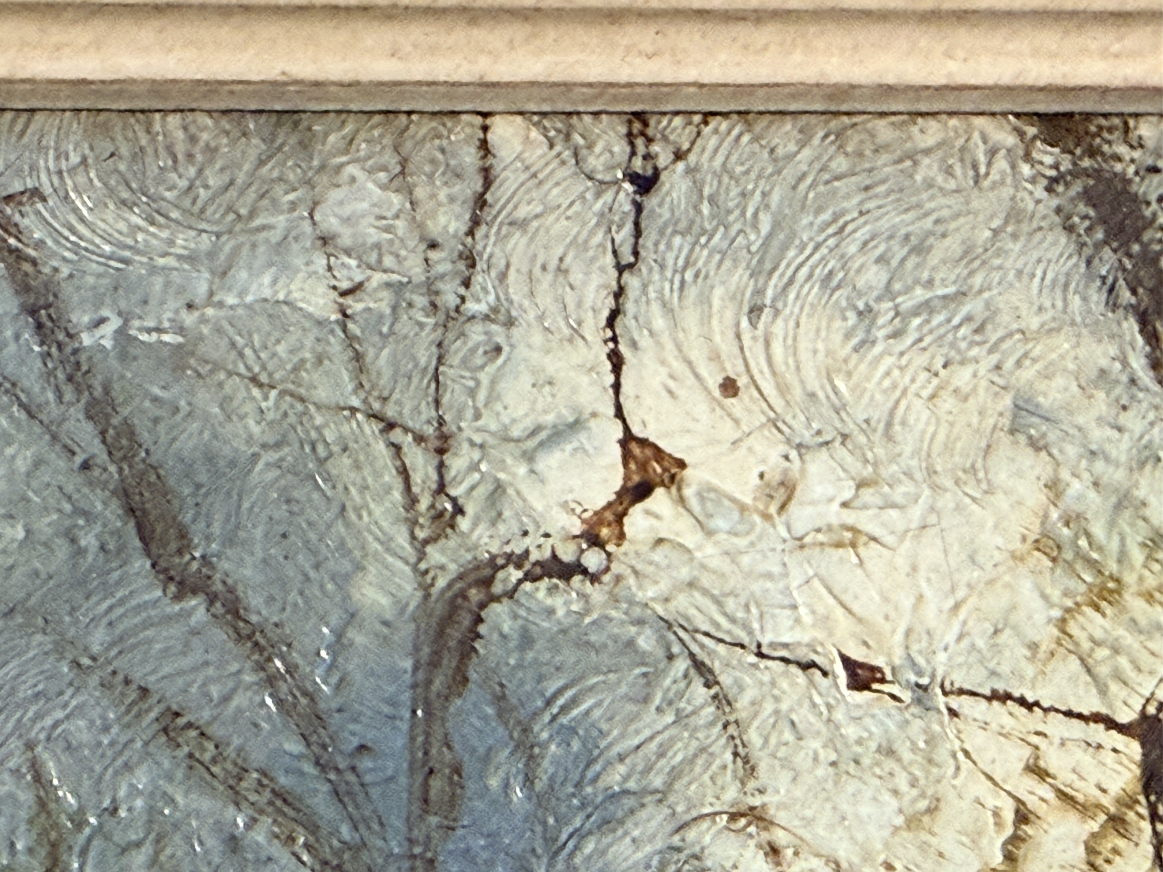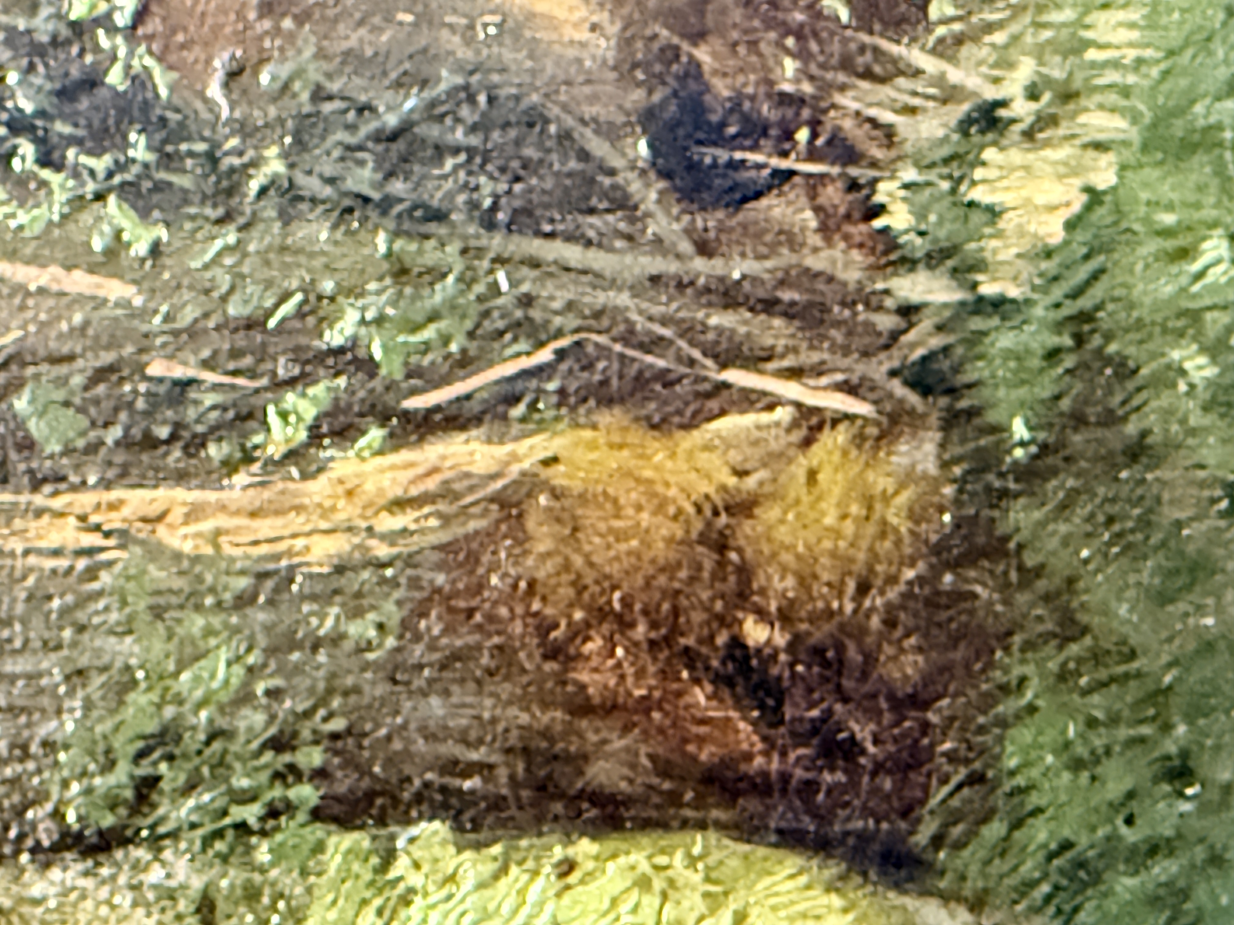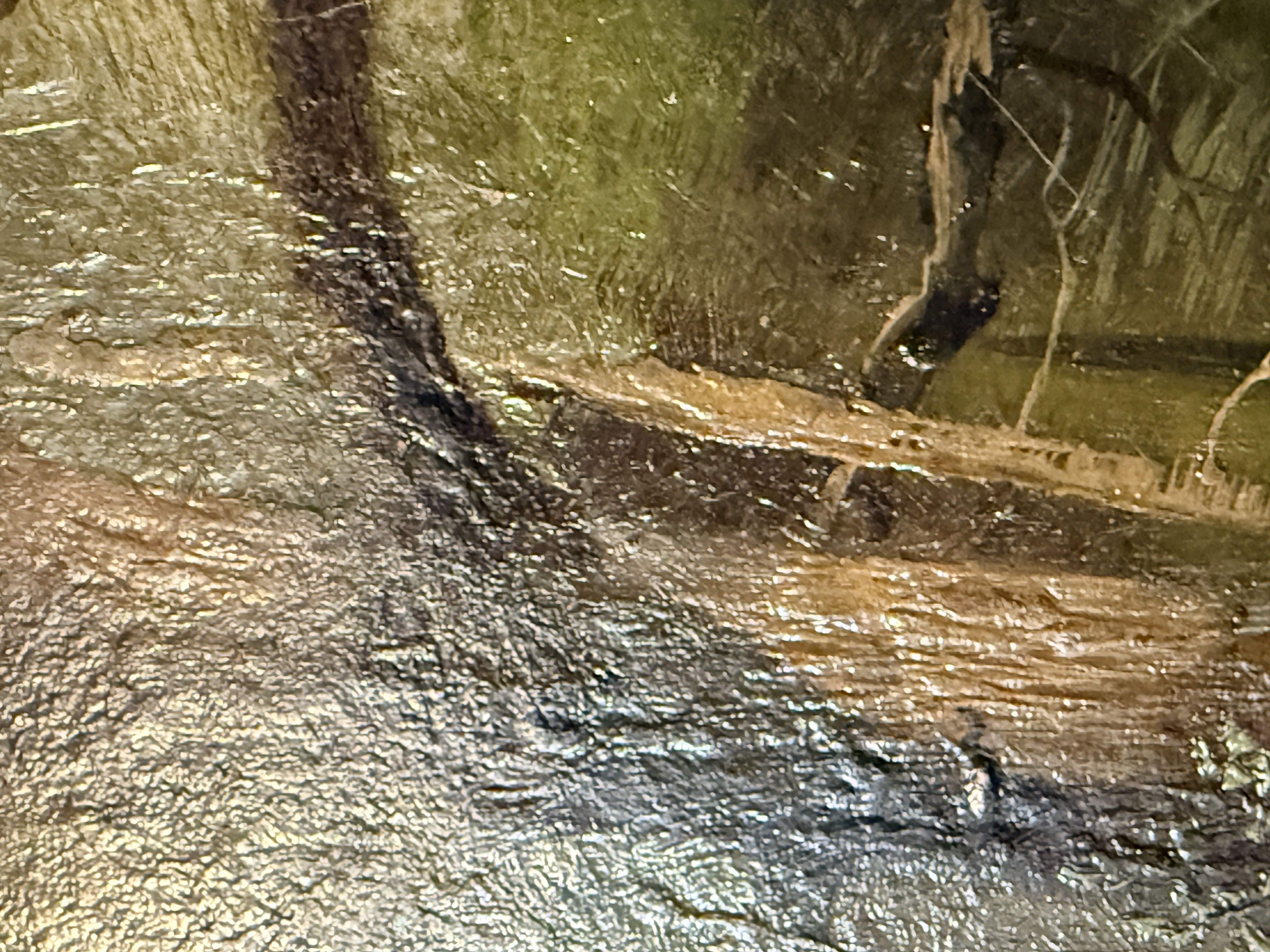 Both paintings exhibit fine craquelure and minor surface wear consistent with age. The gilded frames show light scuffing and age-appropriate wear to the finish. Art is from a clean smoke free home.