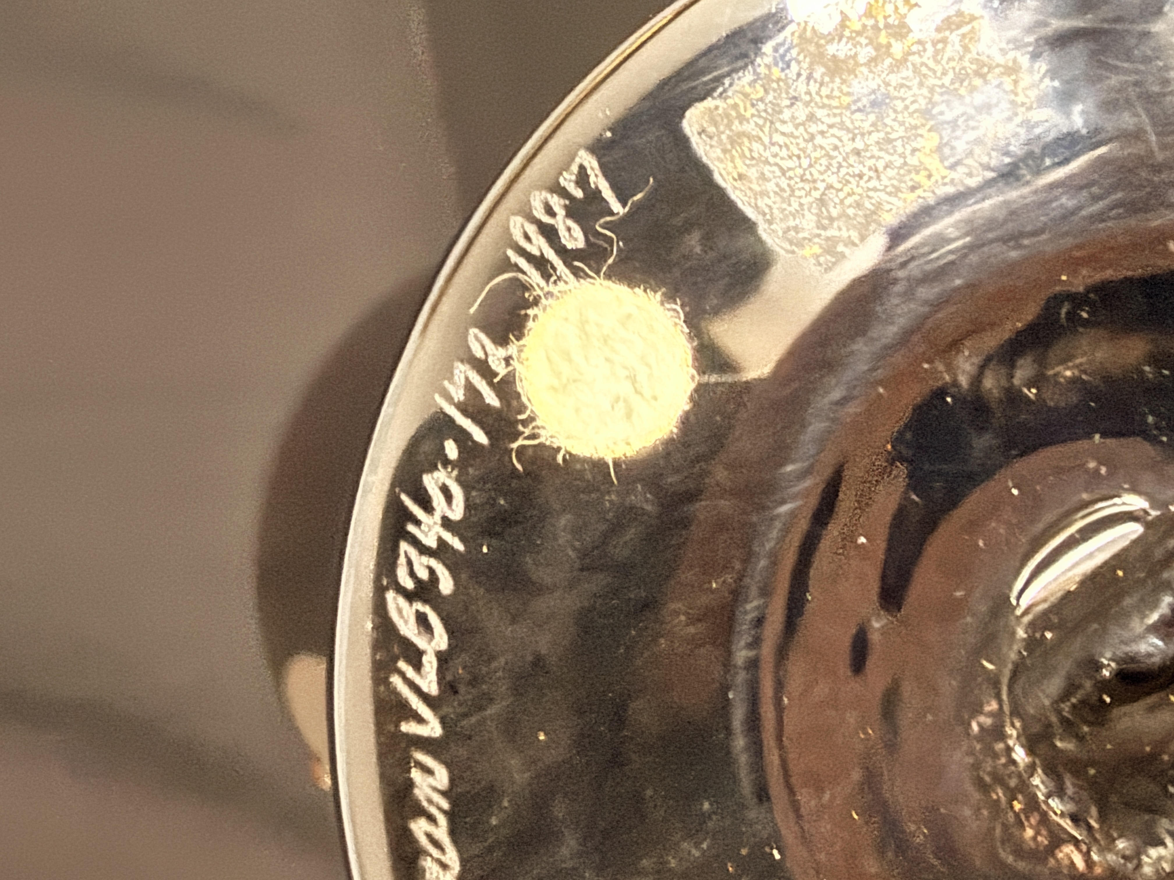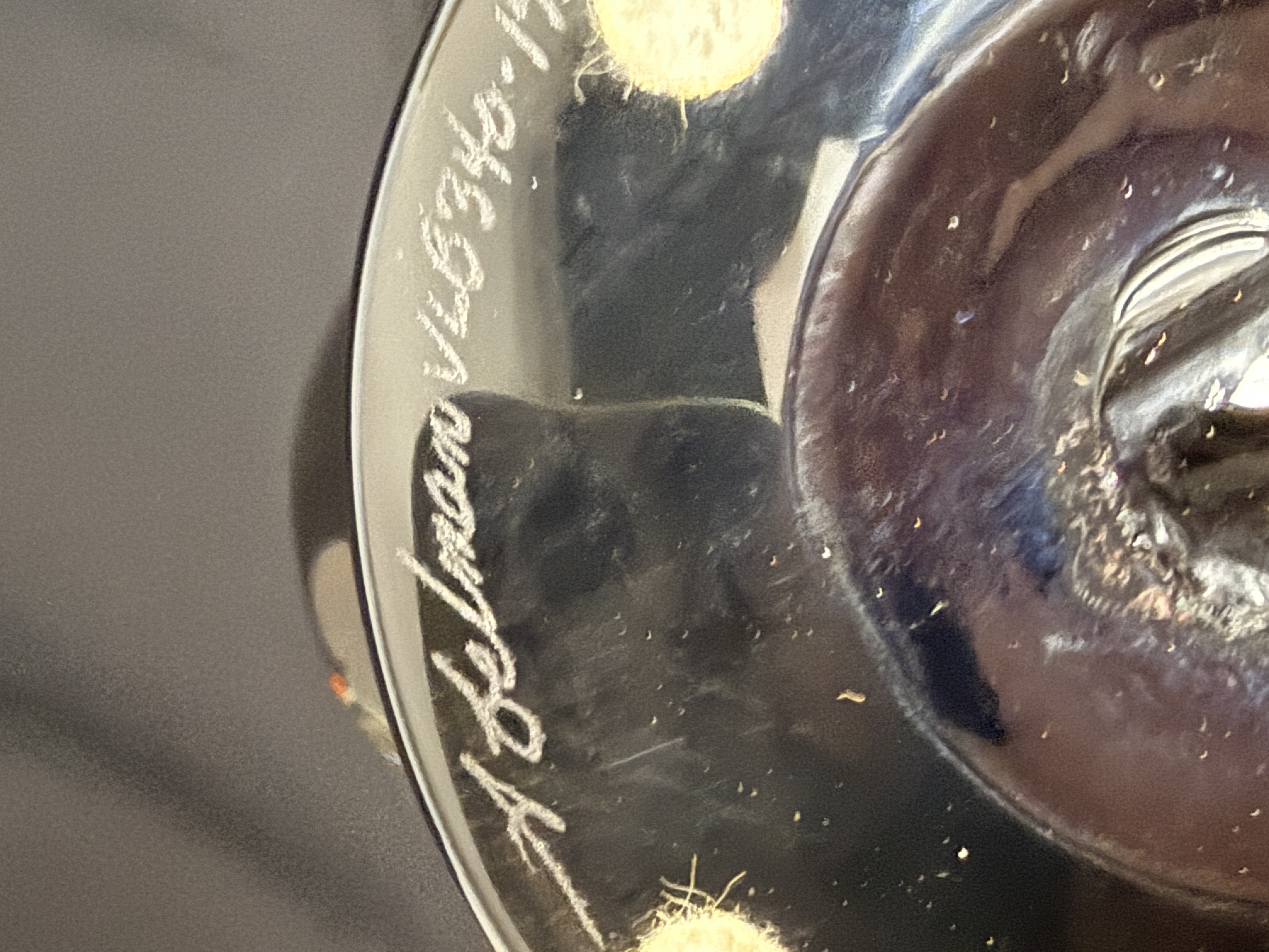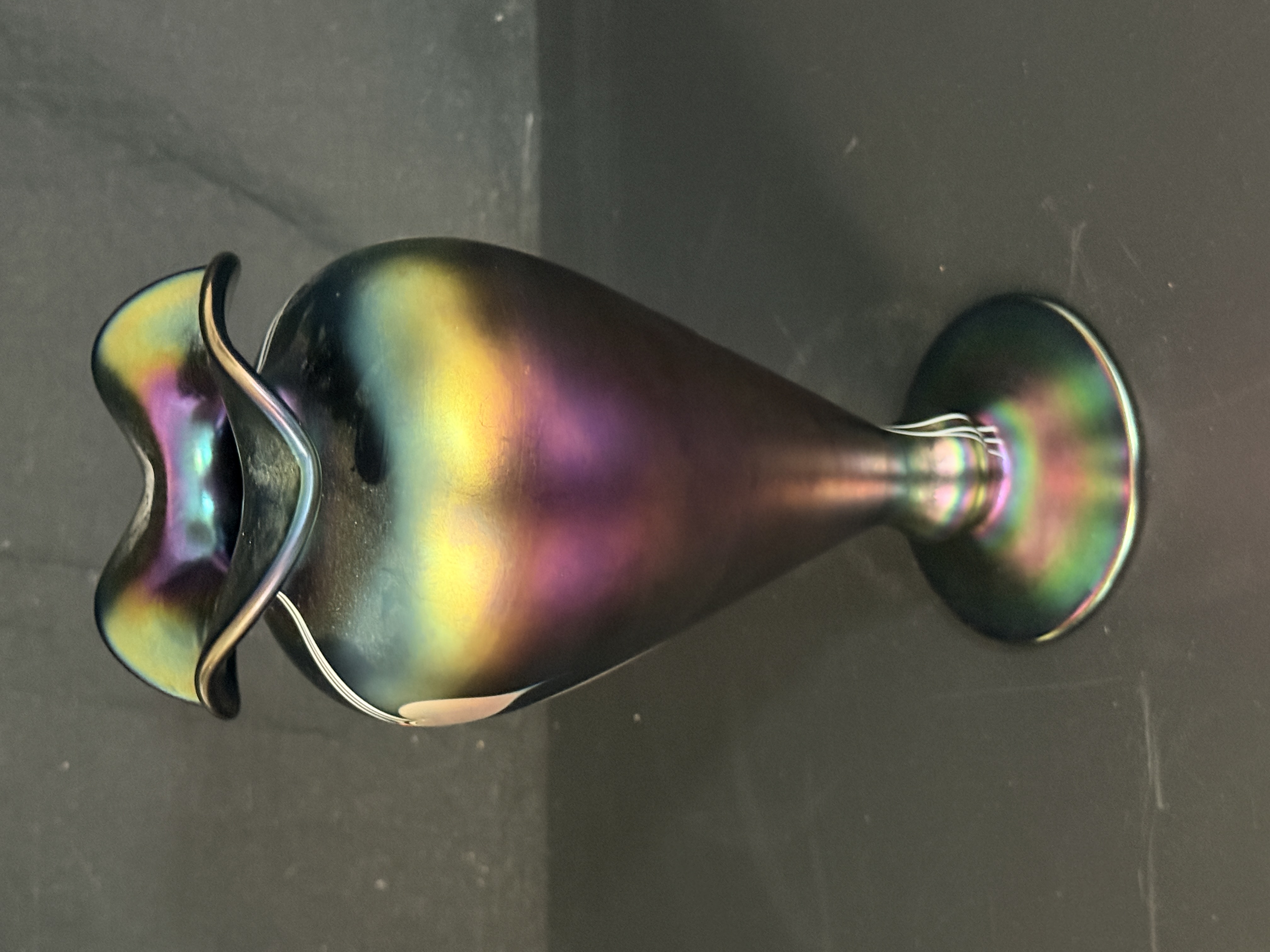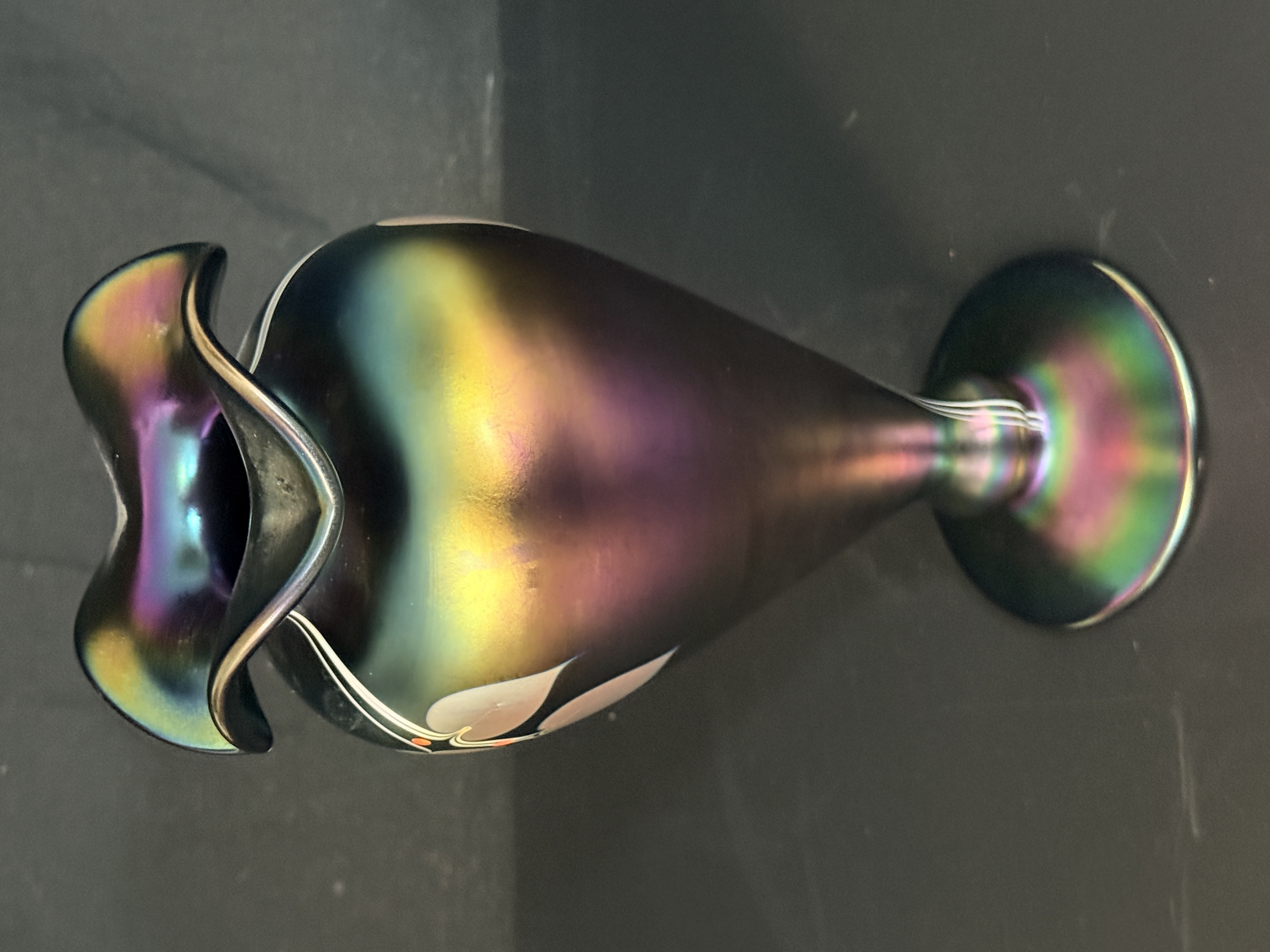 The vase is in overall good condition. Minor adhesive residue from a previous label is visible on the underside of the base. No chips, cracks, or repairs are observed.