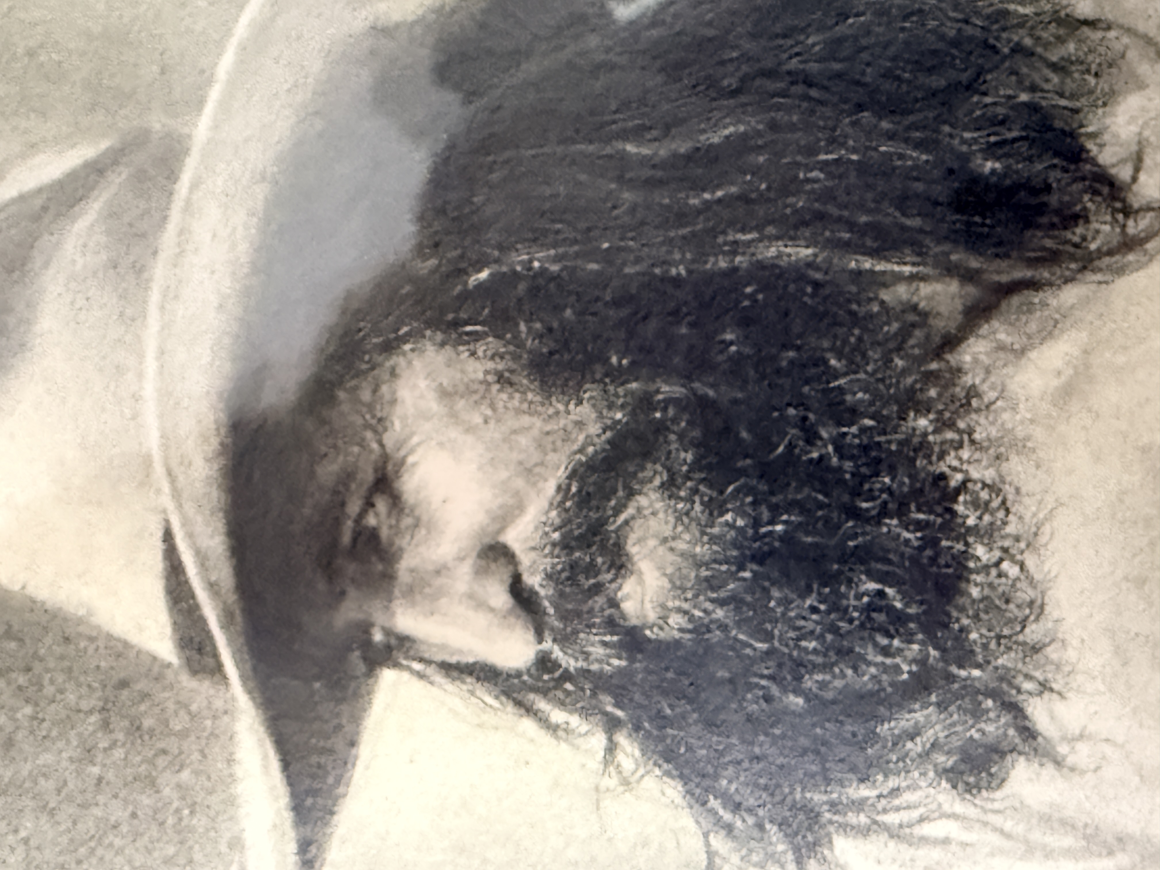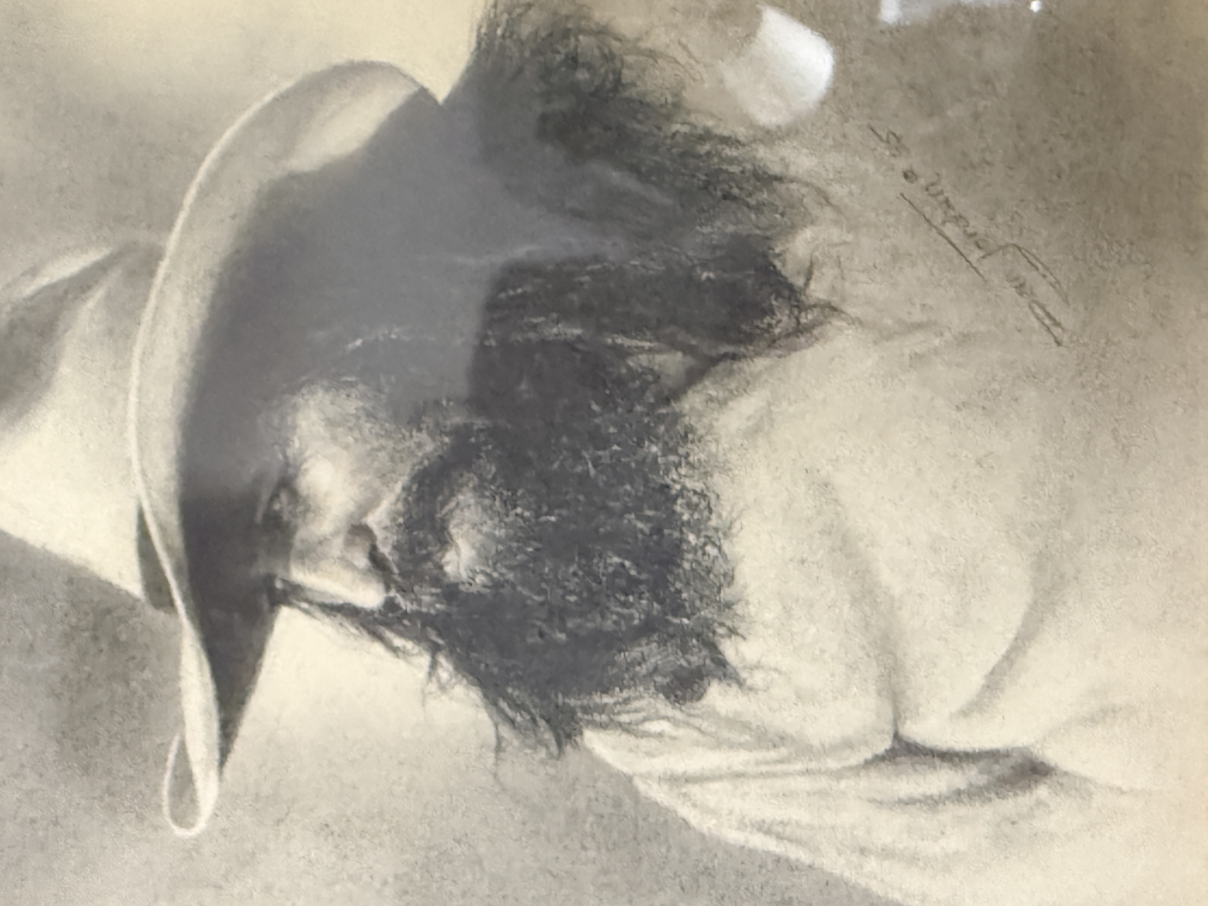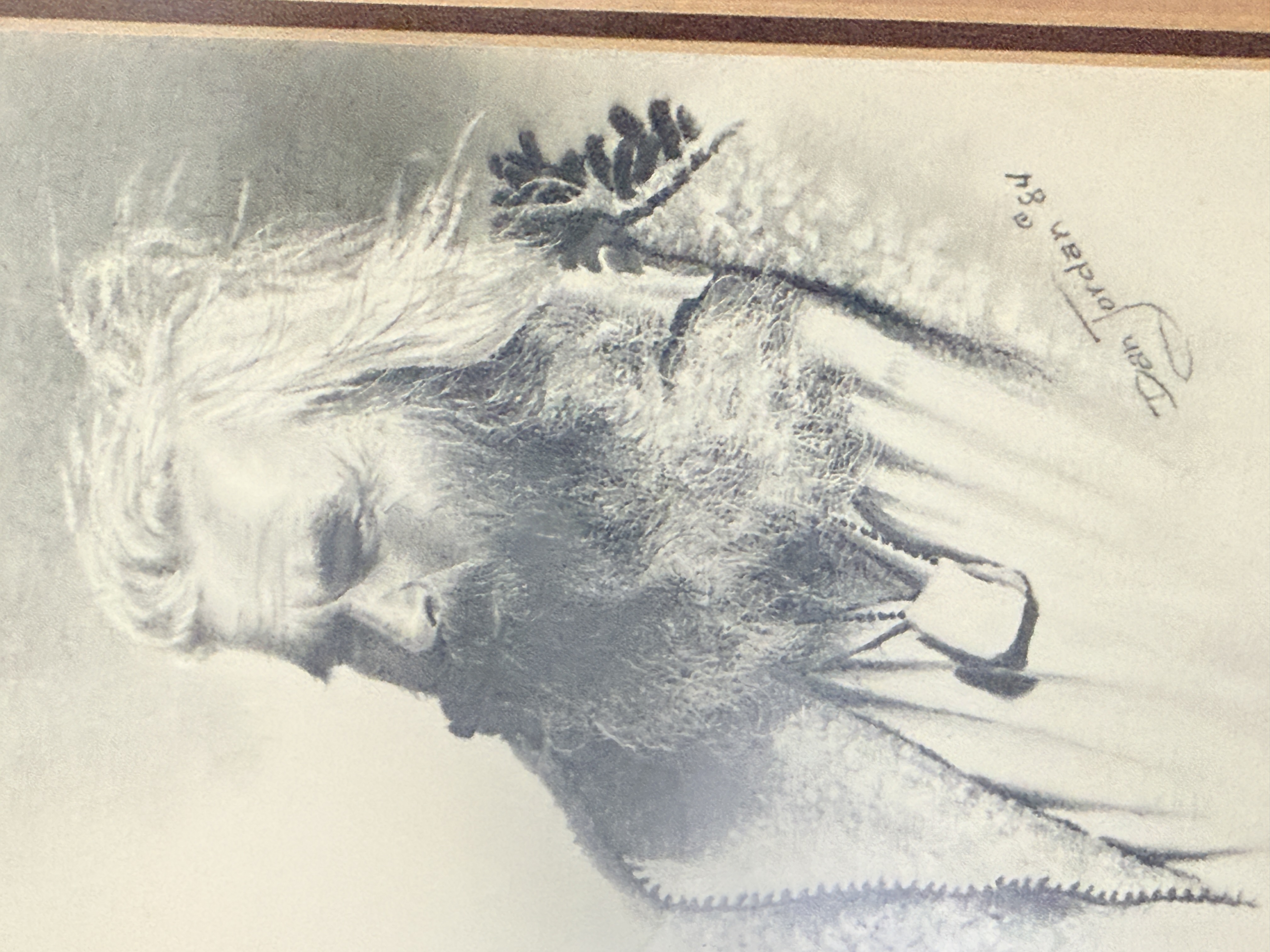 The drawings appear to be in good condition. The wooden frames show minor surface wear and light scuffing. The paper backing on the reverse of the frames shows minor tearing and shelf wear. Art is from a clean smoke free home.