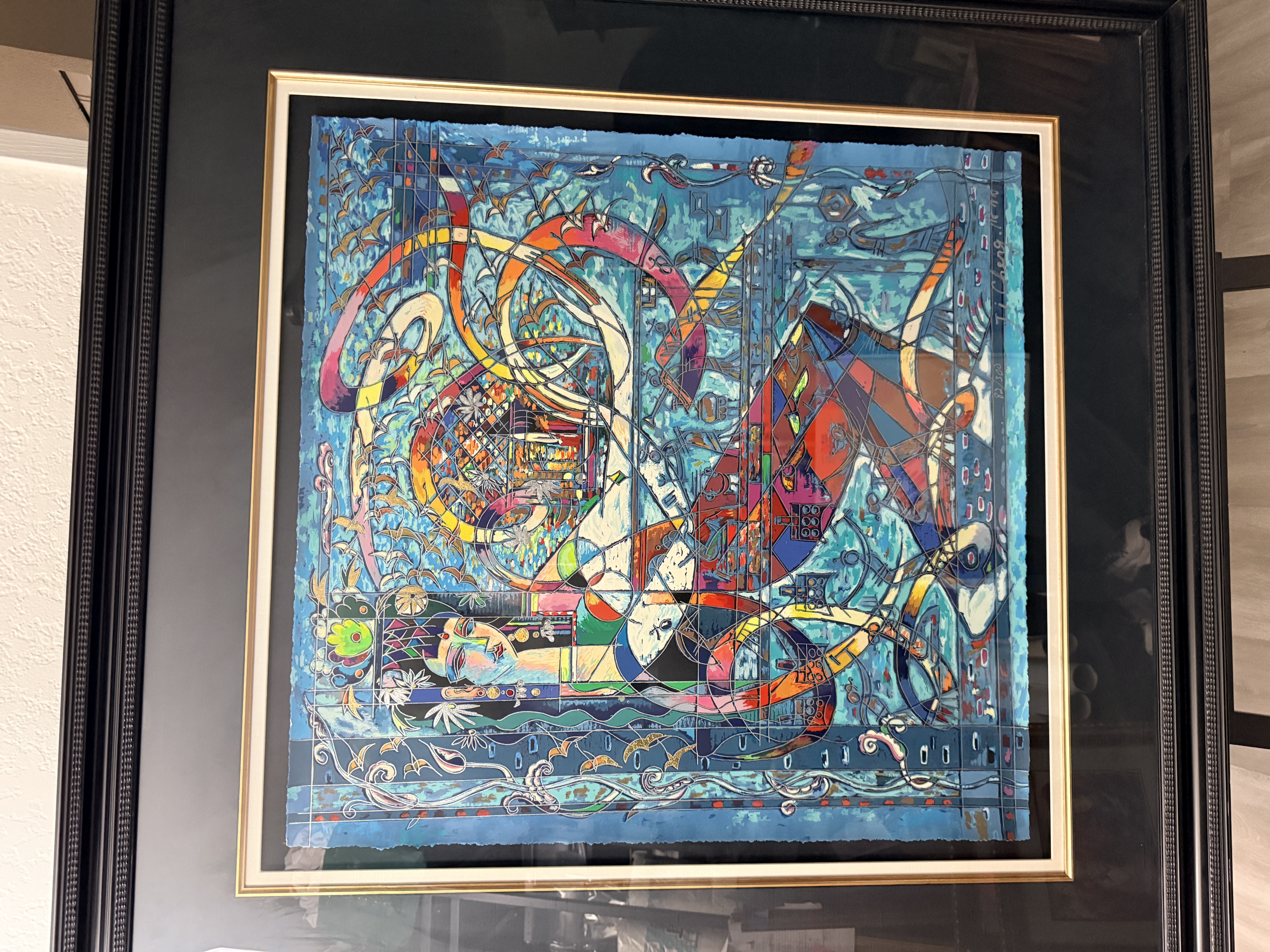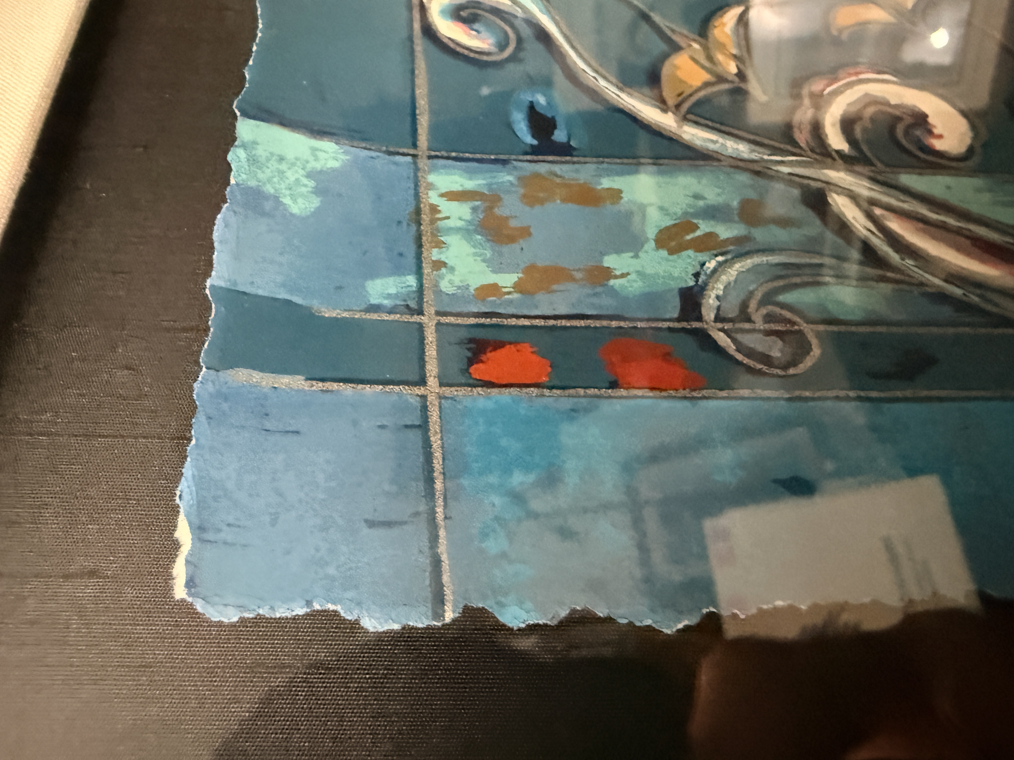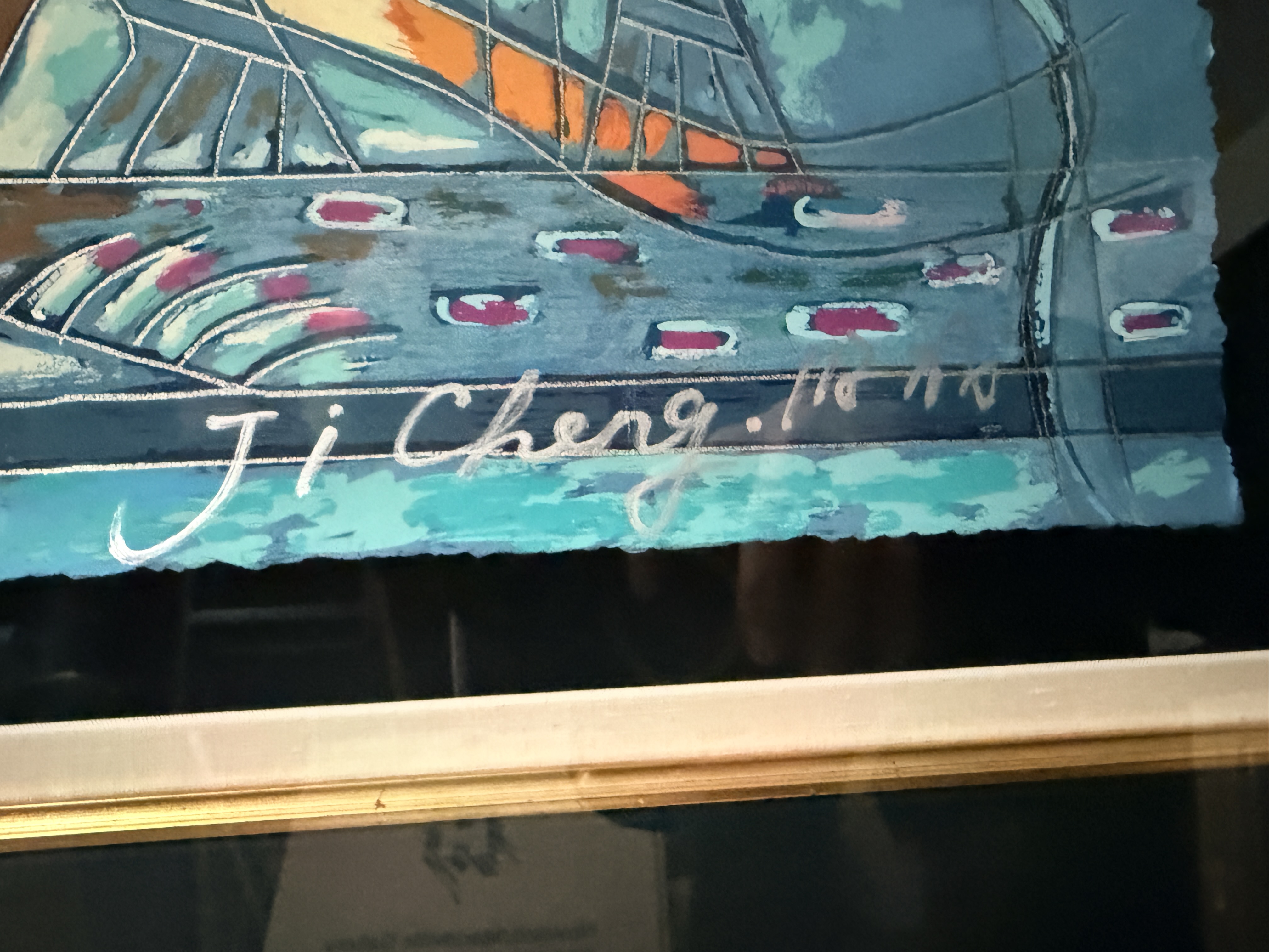 Both items are in good overall condition. Minor surface wear is visible on the frames. A small blemish is present on the frame of the piece signed Jiang. Art is from a clean smoke free home. Very heavy pieces!
