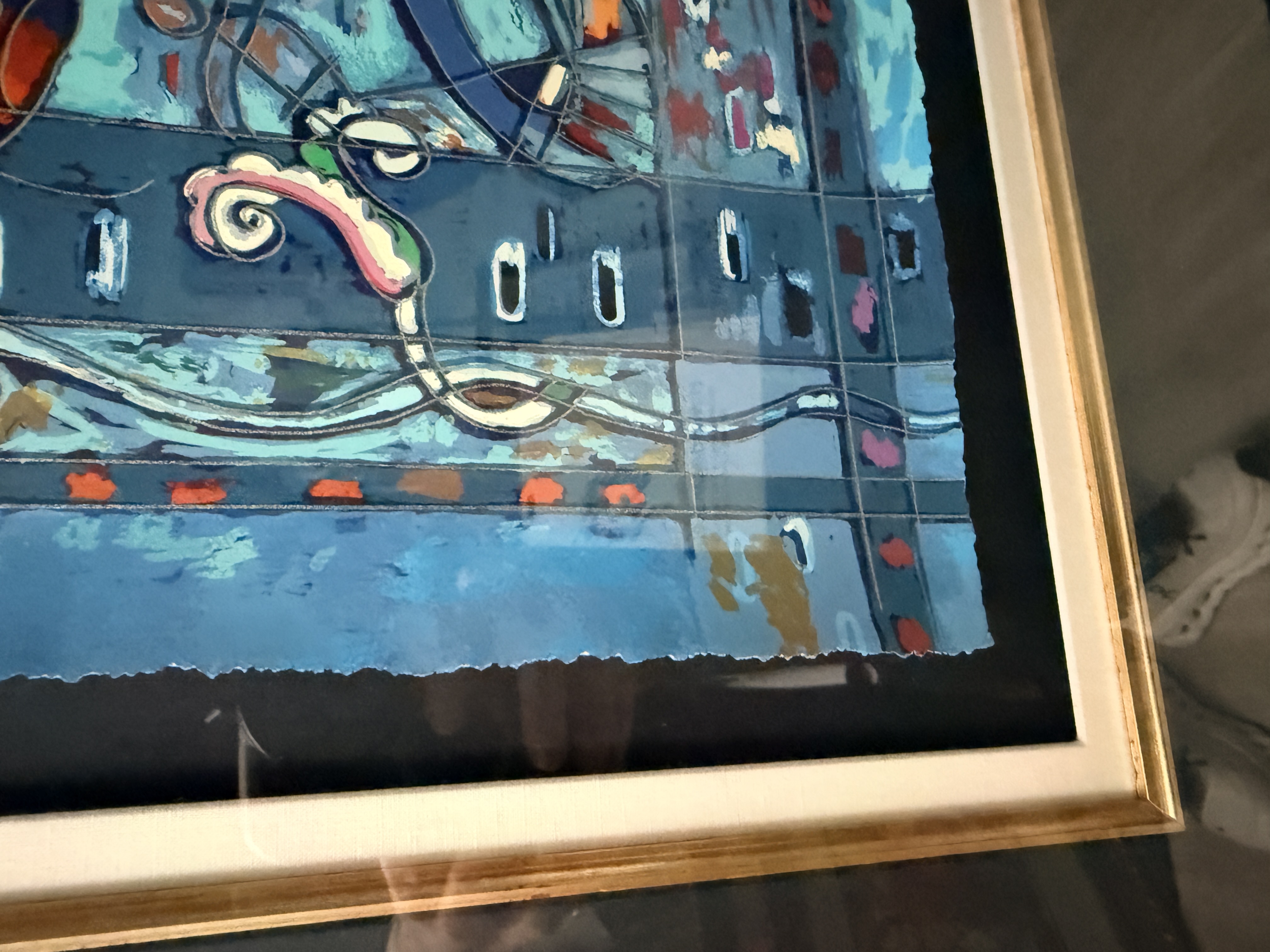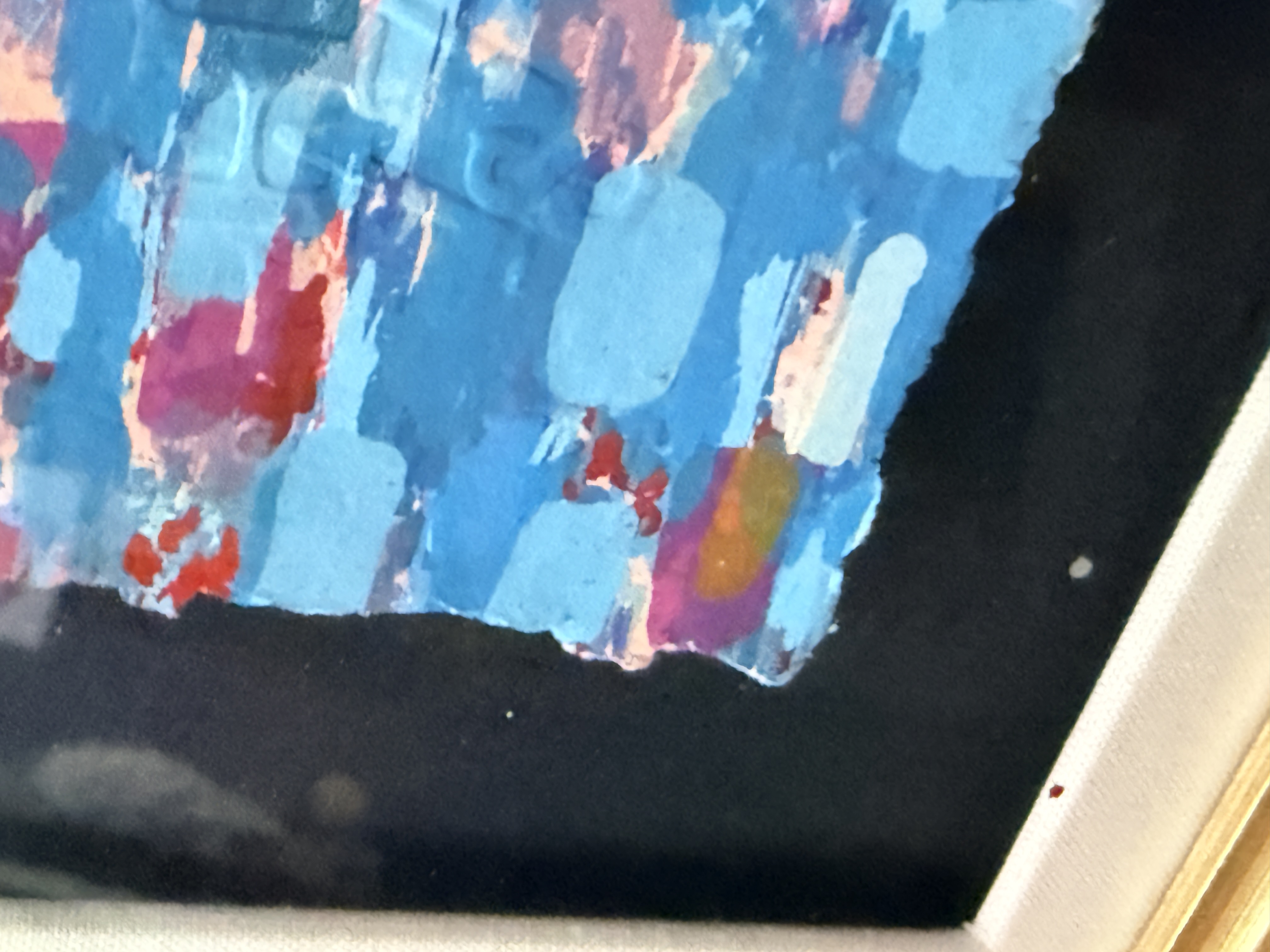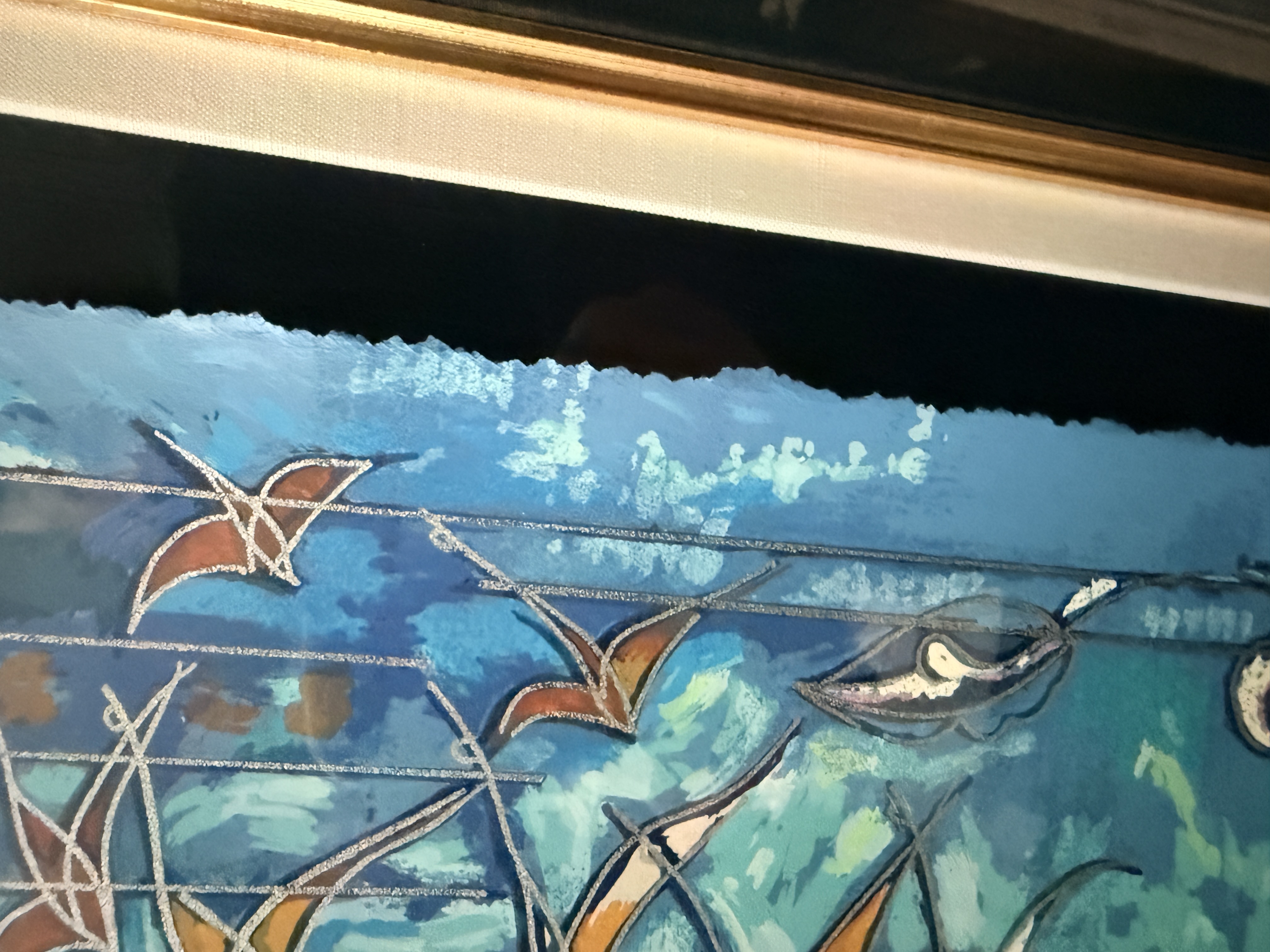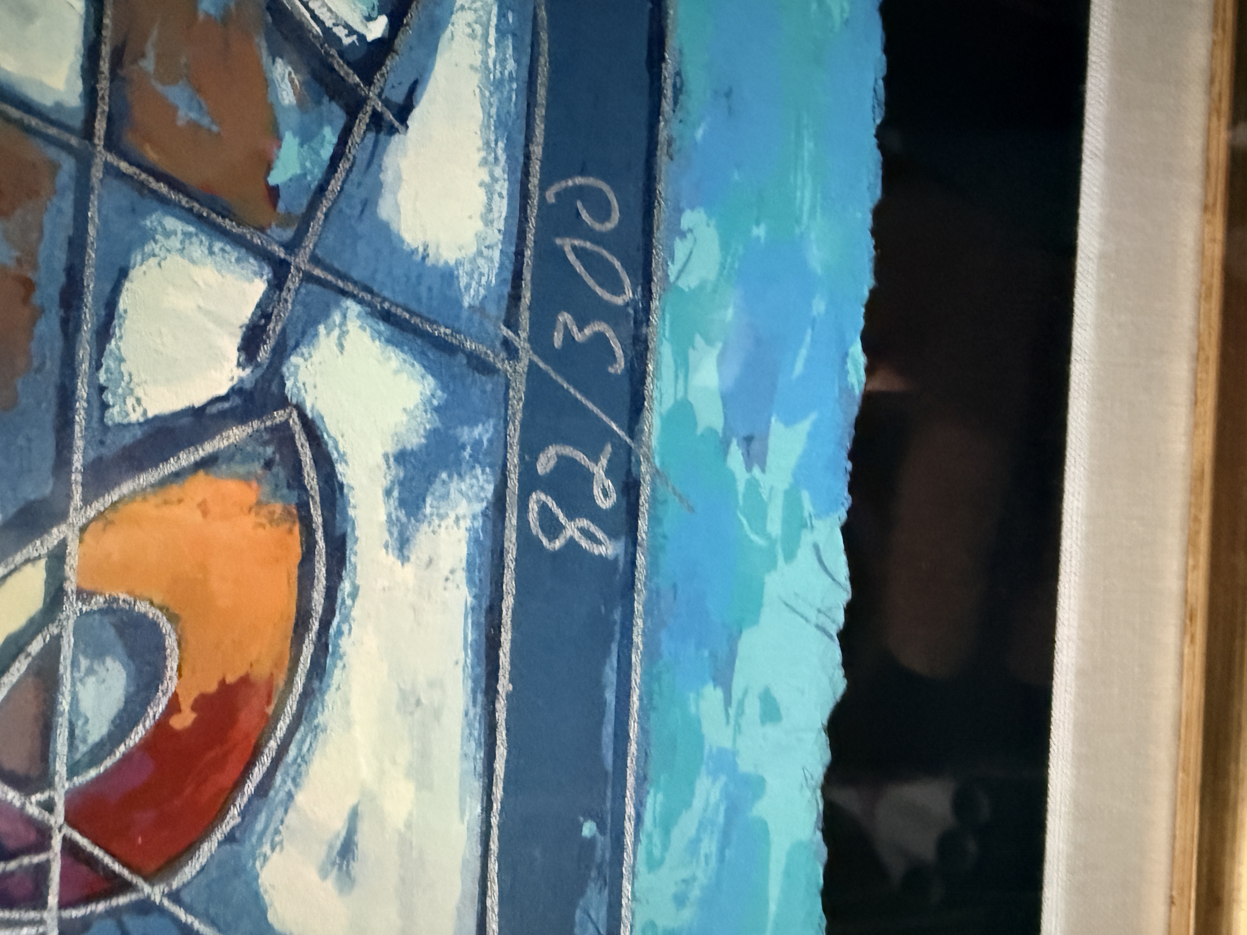 Both items are in good overall condition. Minor surface wear is visible on the frames. A small blemish is present on the frame of the piece signed Jiang. Art is from a clean smoke free home. Very heavy pieces!