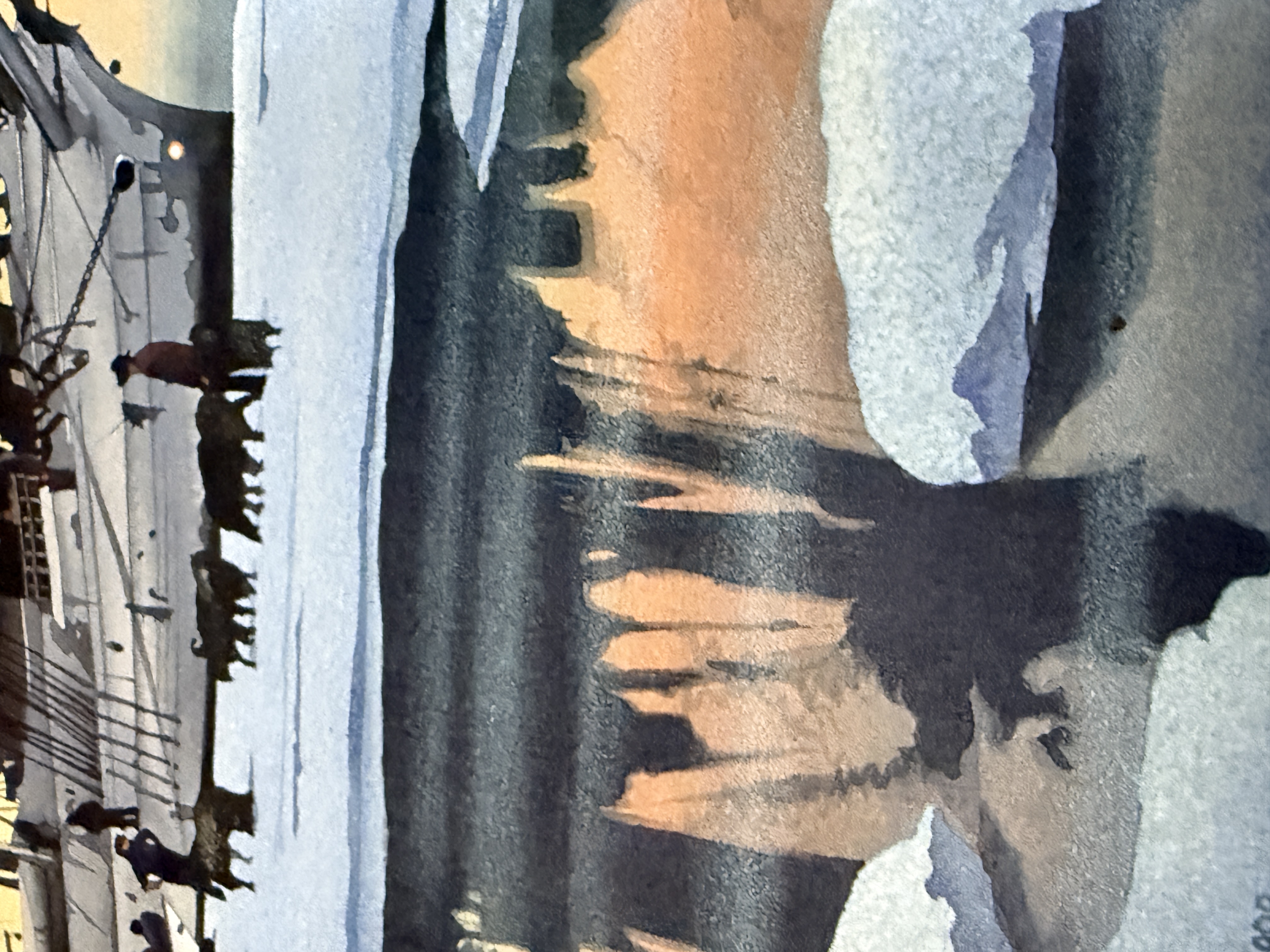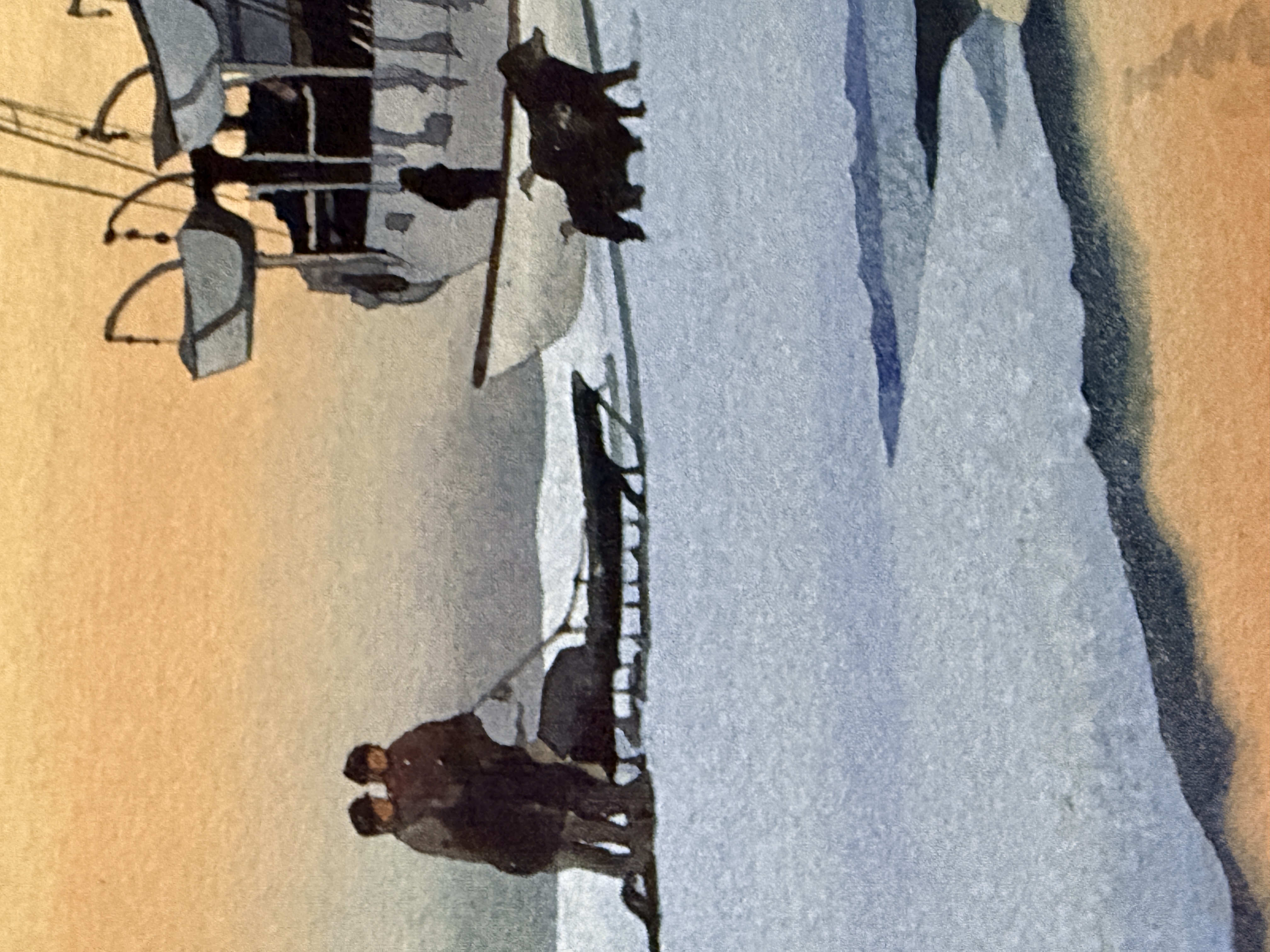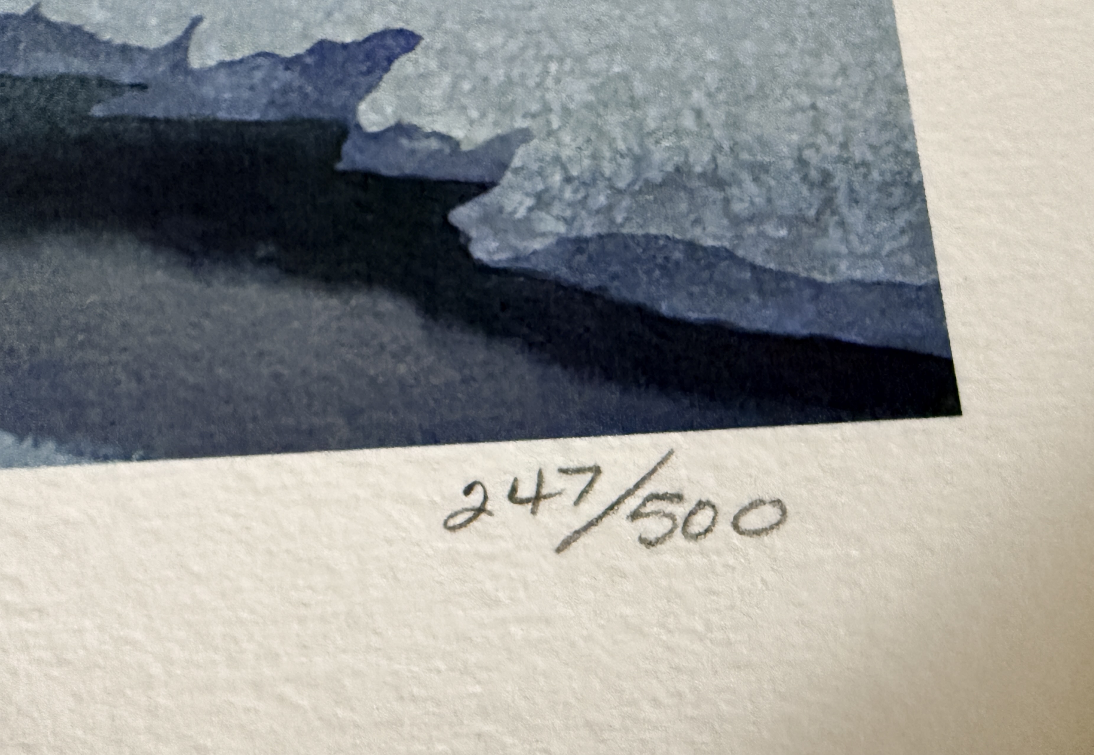 The print is in overall good condition. There are minor handling marks and light creasing visible along the outer white margins. The printed image remains bright with no visible fading or foxing. Art is from a clean smoke free home.