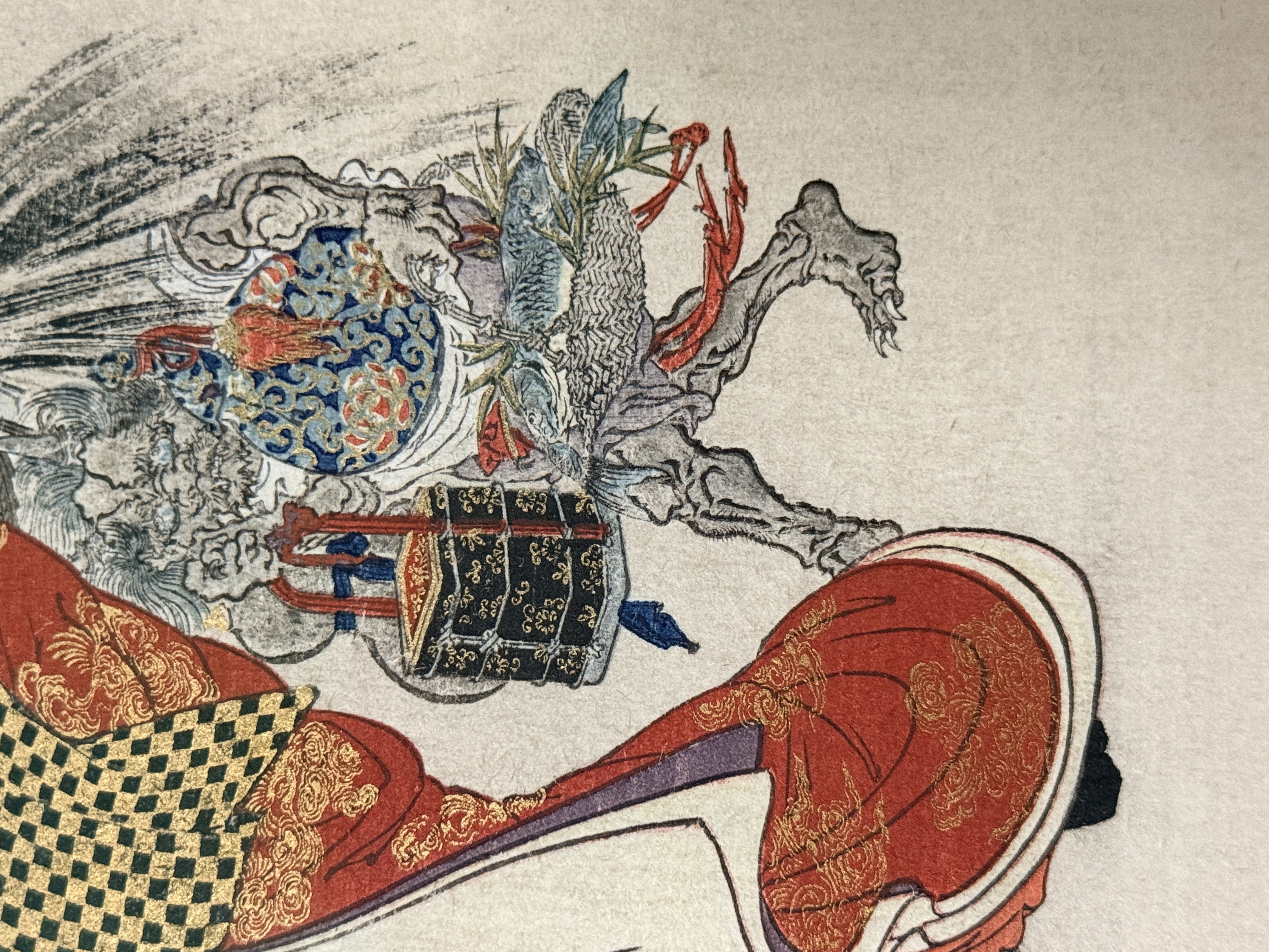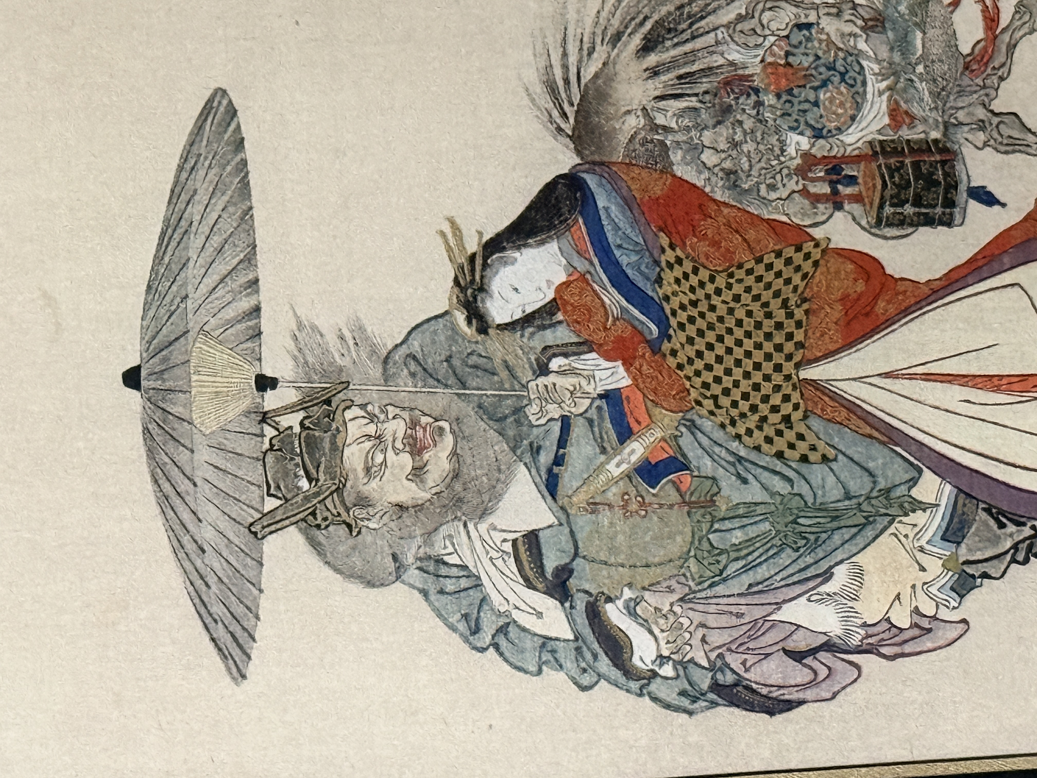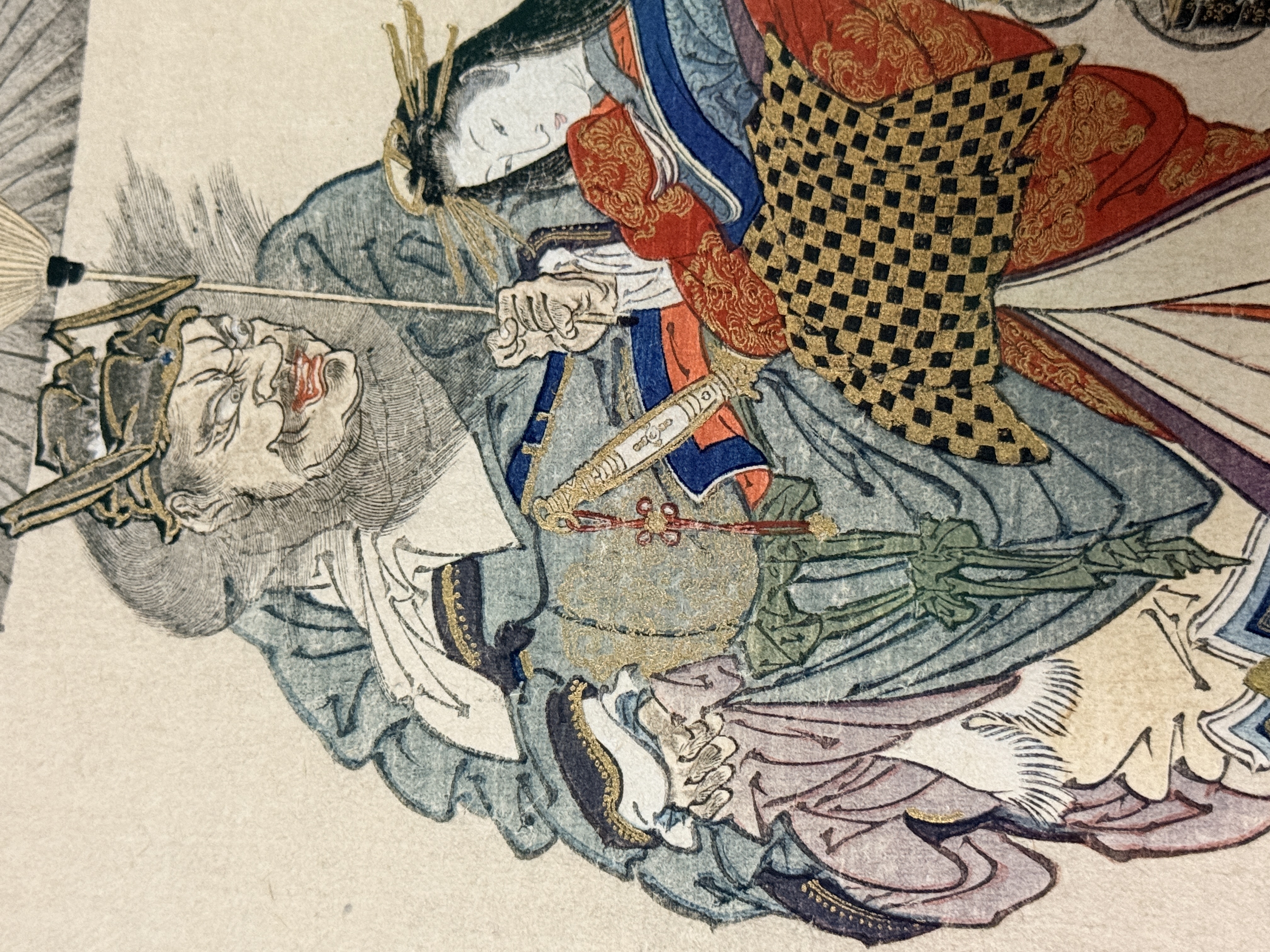 Japanese Woodblock Print Attributed to Kawanabe Kyosai, Bijin and Shoki
