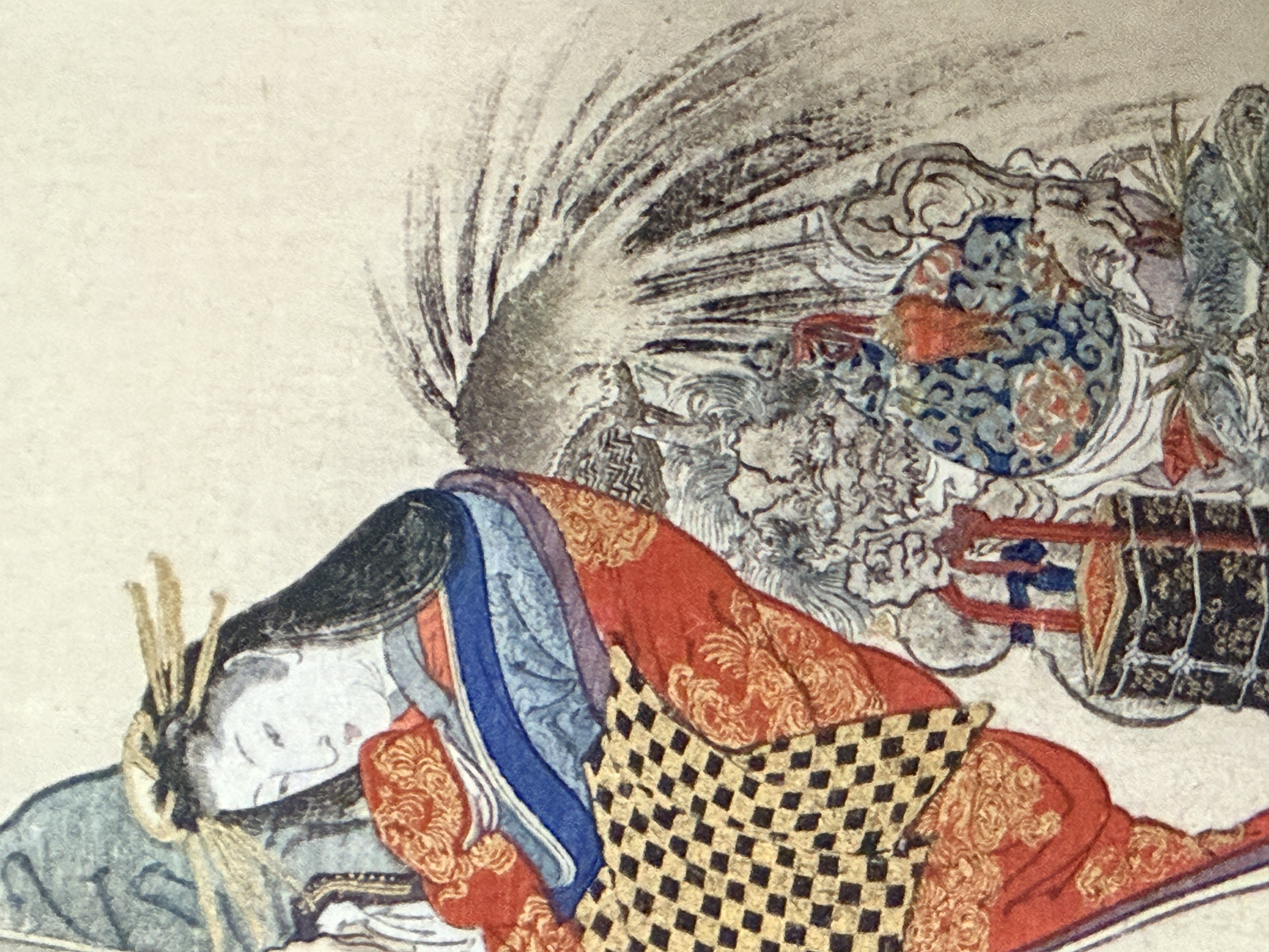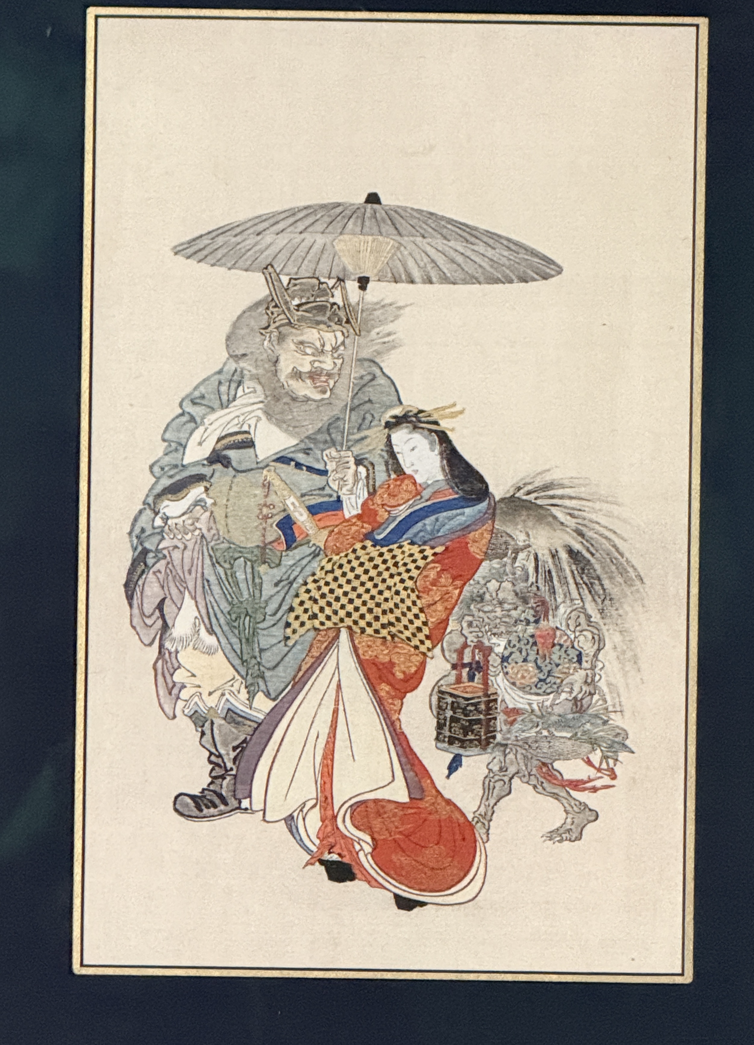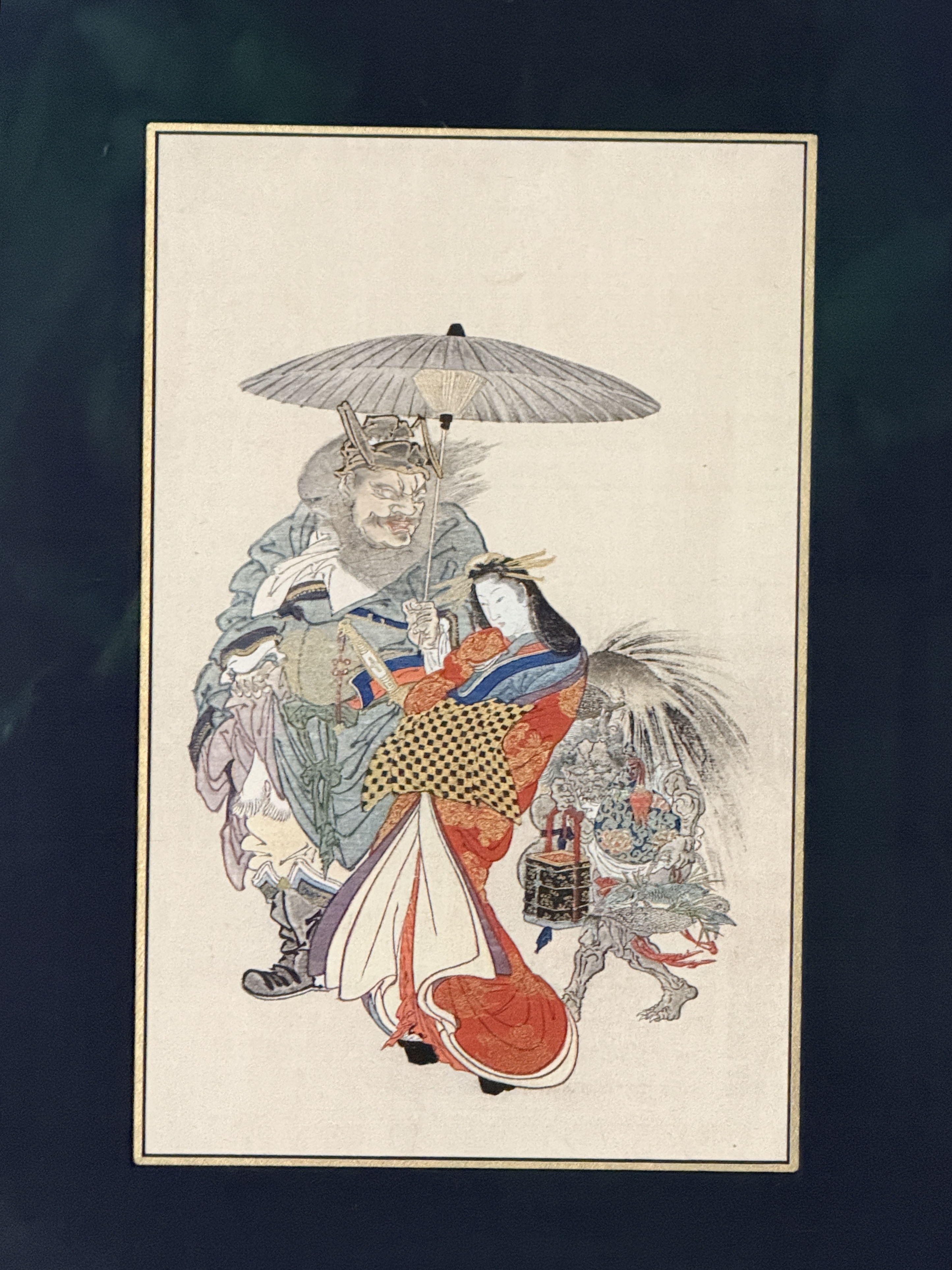 Japanese Woodblock Print Attributed to Kawanabe Kyosai, Bijin and Shoki