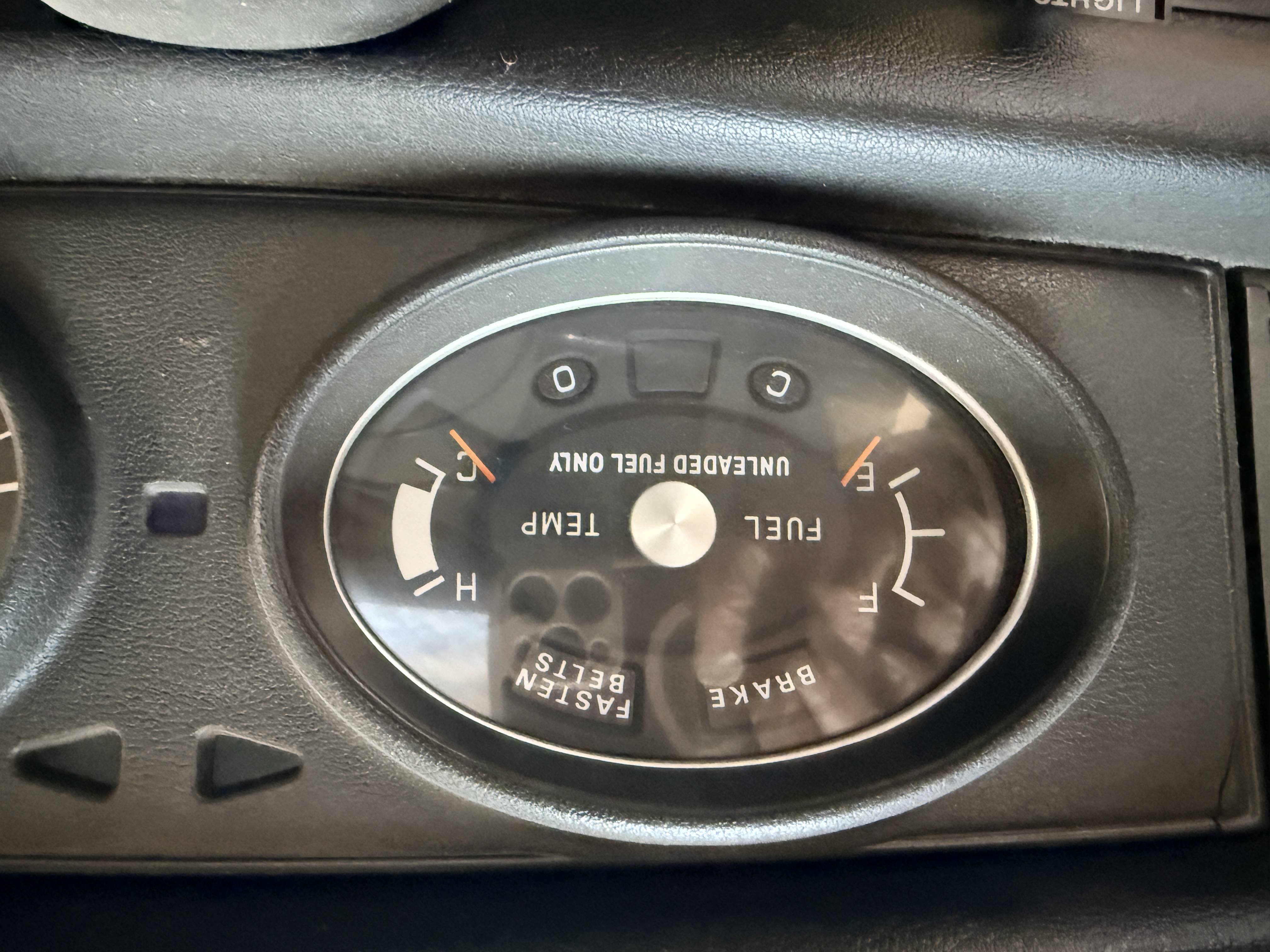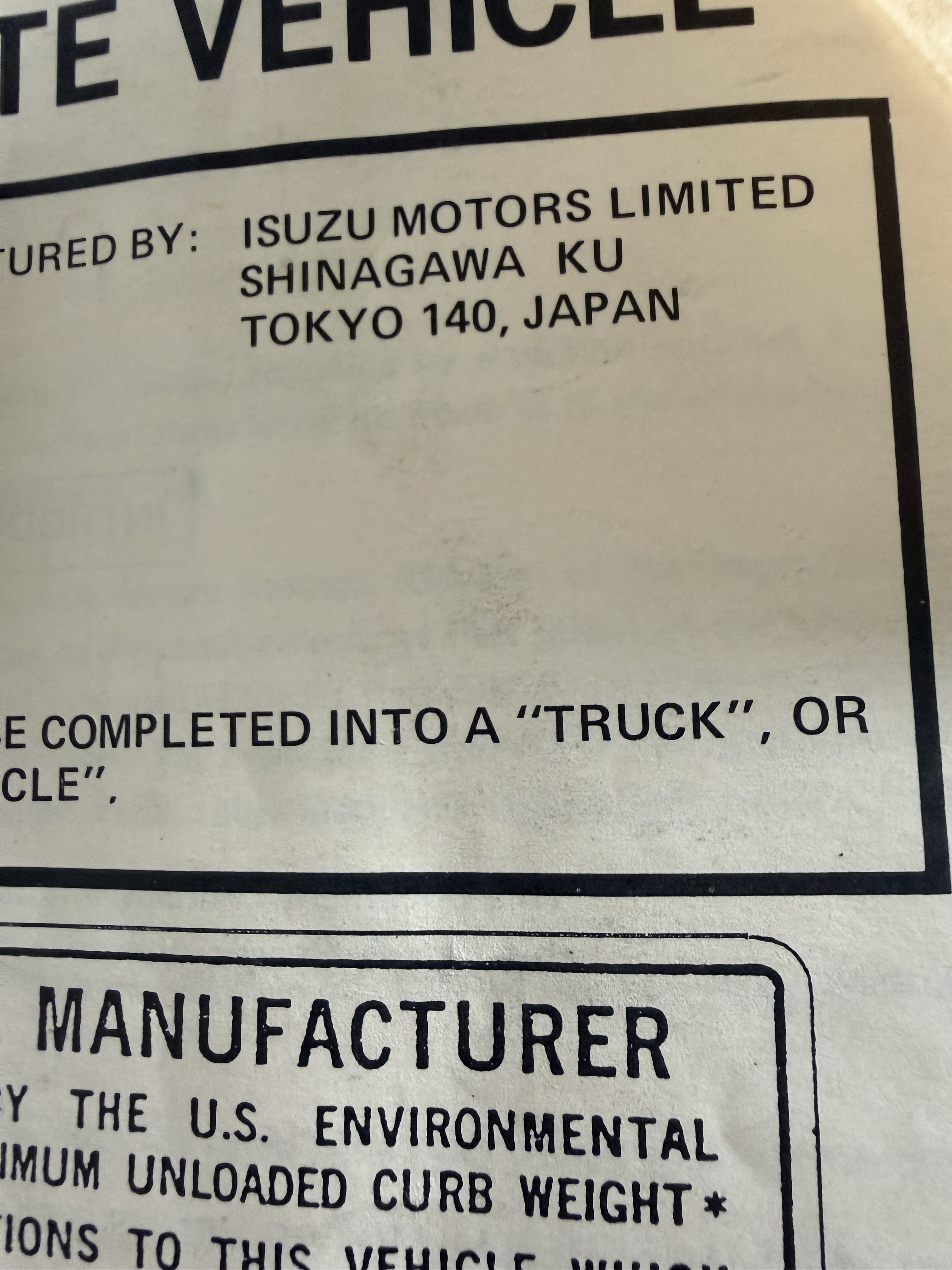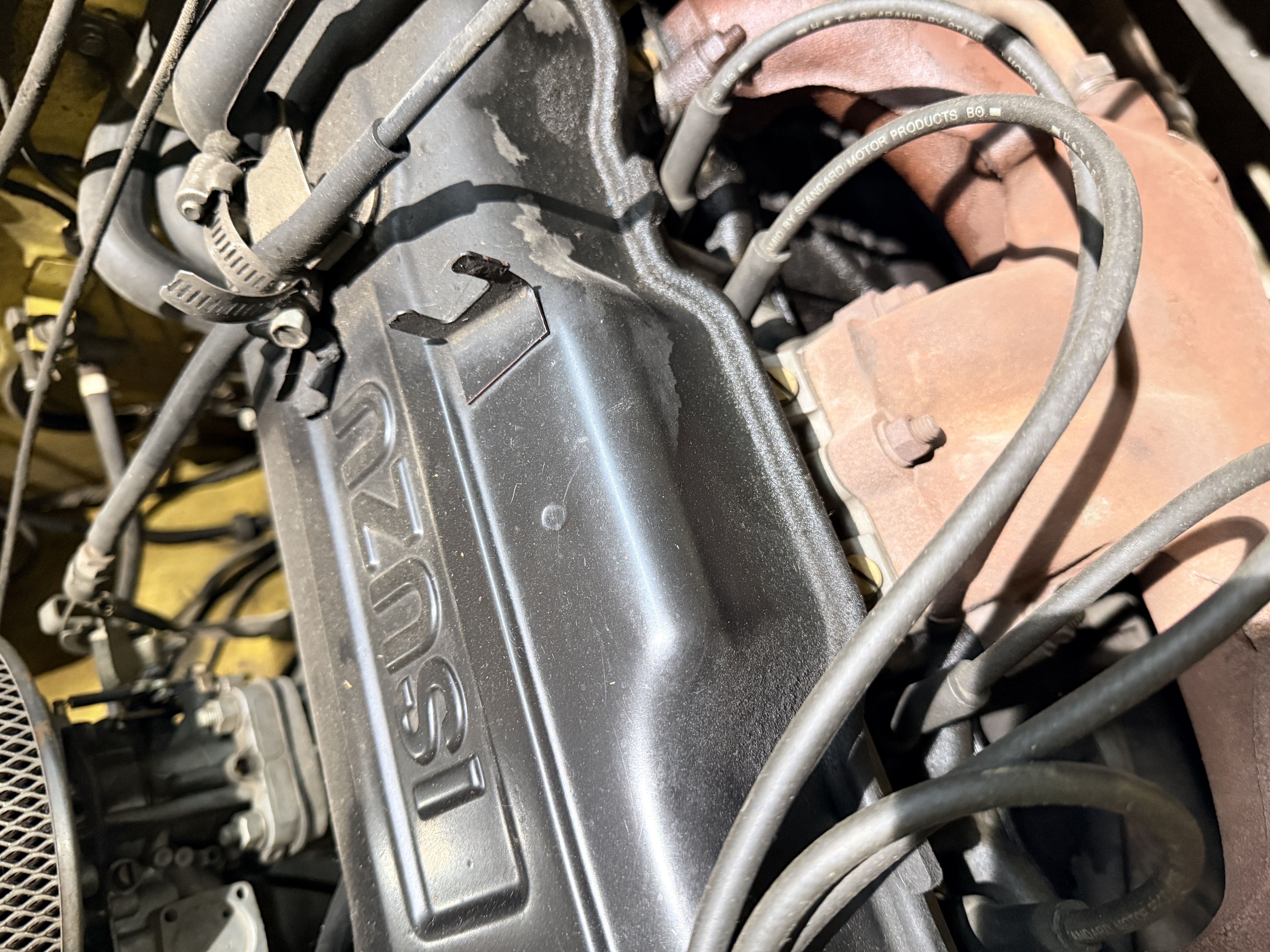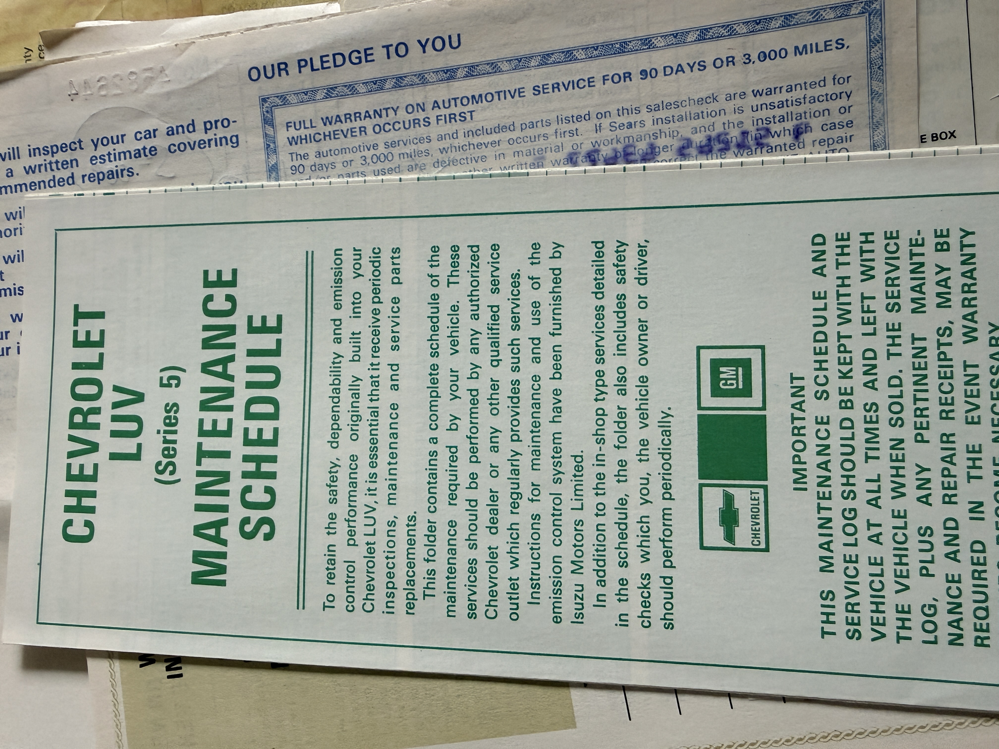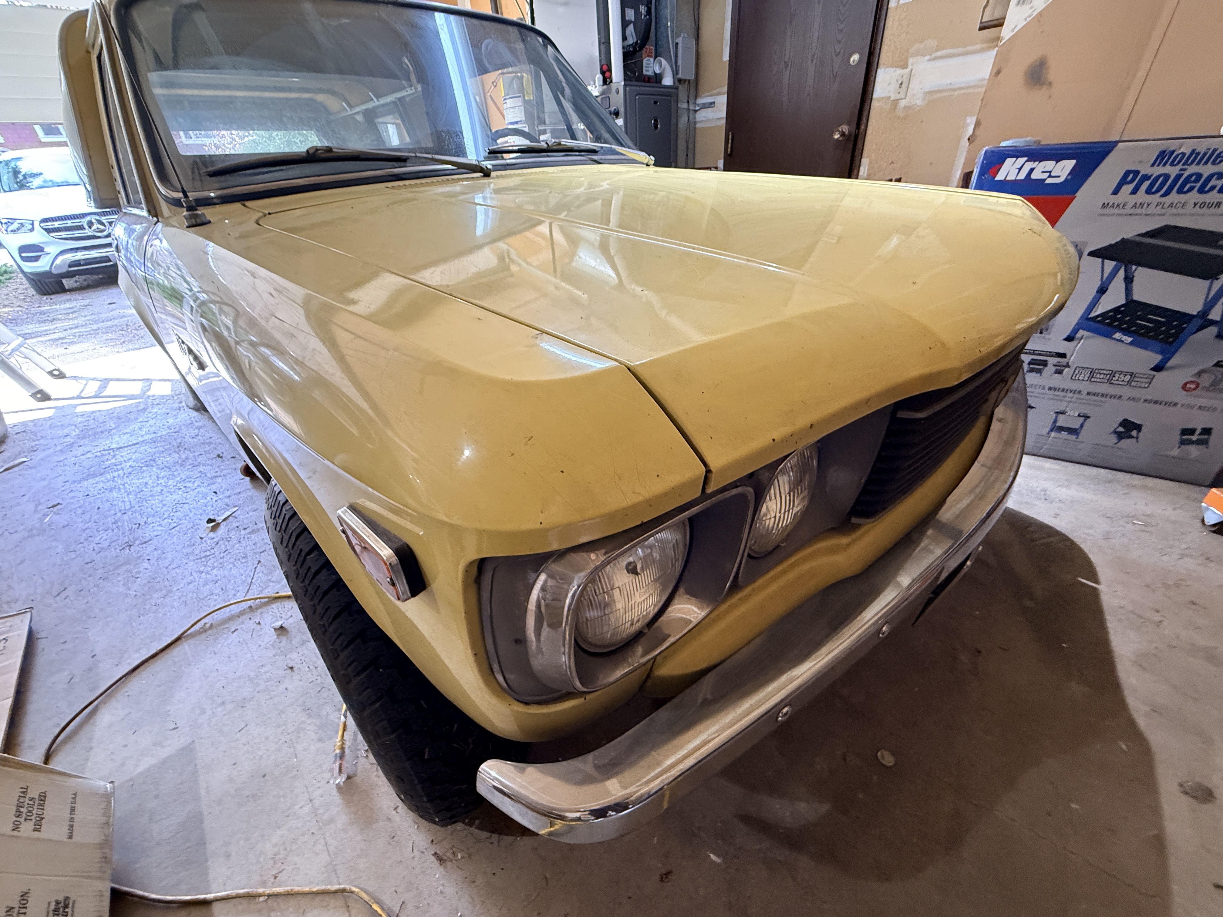 Garaged – This 1976 Chevrolet LUV is a first-generation light utility vehicle manufactured by Isuzu Motors Ltd. in Japan for Chevrolet. The vehicle is finished in yellow and features a color-matched custom integrated canopy manufactured by International Mfg. Co. in December 1976. The exterior is equipped with a chrome front bumper, a quad-headlight grille with a central Chevrolet bowtie emblem, LUV fender badges, and a tailgate featuring black Chevrolet block lettering. It rides on steel wheels fitted with Supreme star-logo center caps and Yokohama All Season M+S tires. The interior is trimmed in tan and brown vinyl and features a bench seat, a four-speed manual transmission with a floor-mounted shifter, and a Sanyo radio with a full auto eject cassette player. The dashboard includes a 100-mph speedometer with a five-digit odometer and gauges for fuel level and coolant temperature. Identification is provided by a chassis plate in the door jamb listing VIN CLN1358253134 and a secondary manufacturer decal from International Mfg. Co. The lot includes two keys and vintage Washington state license plates.