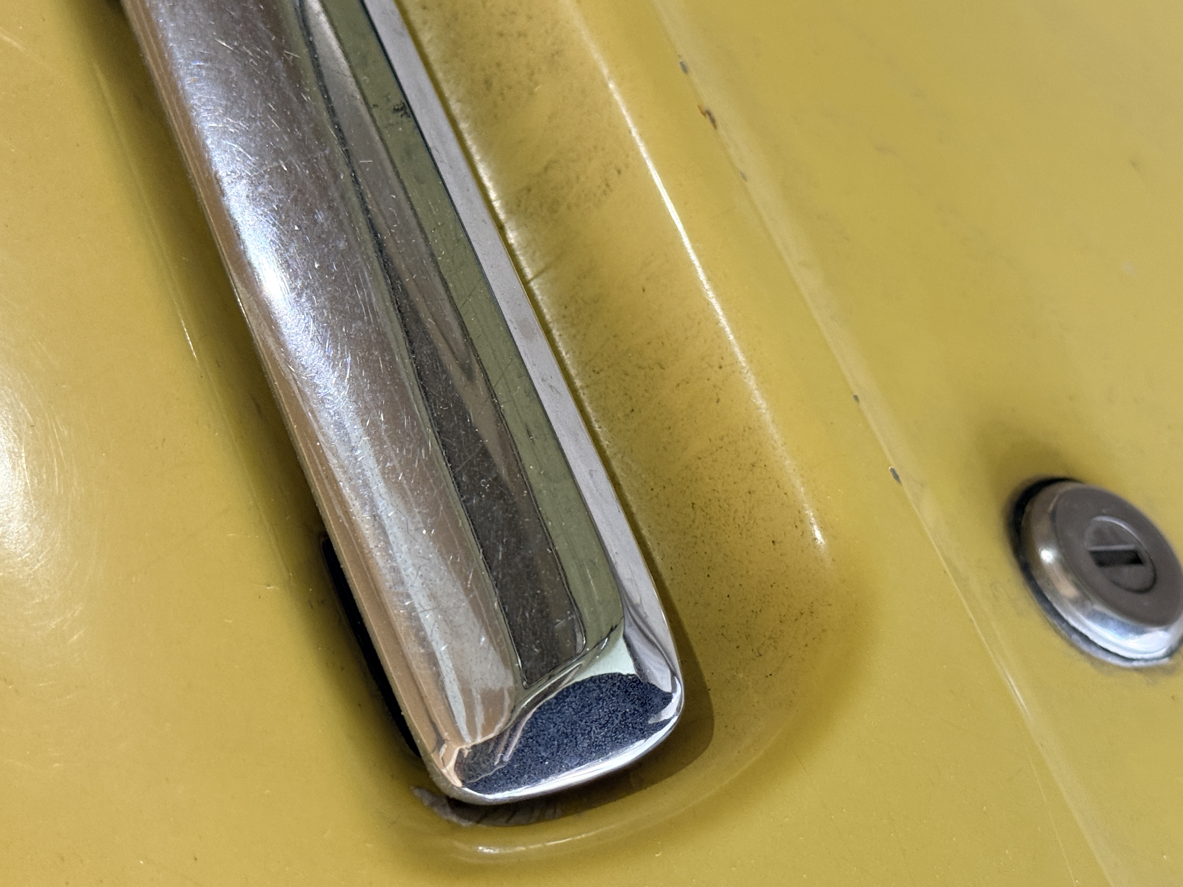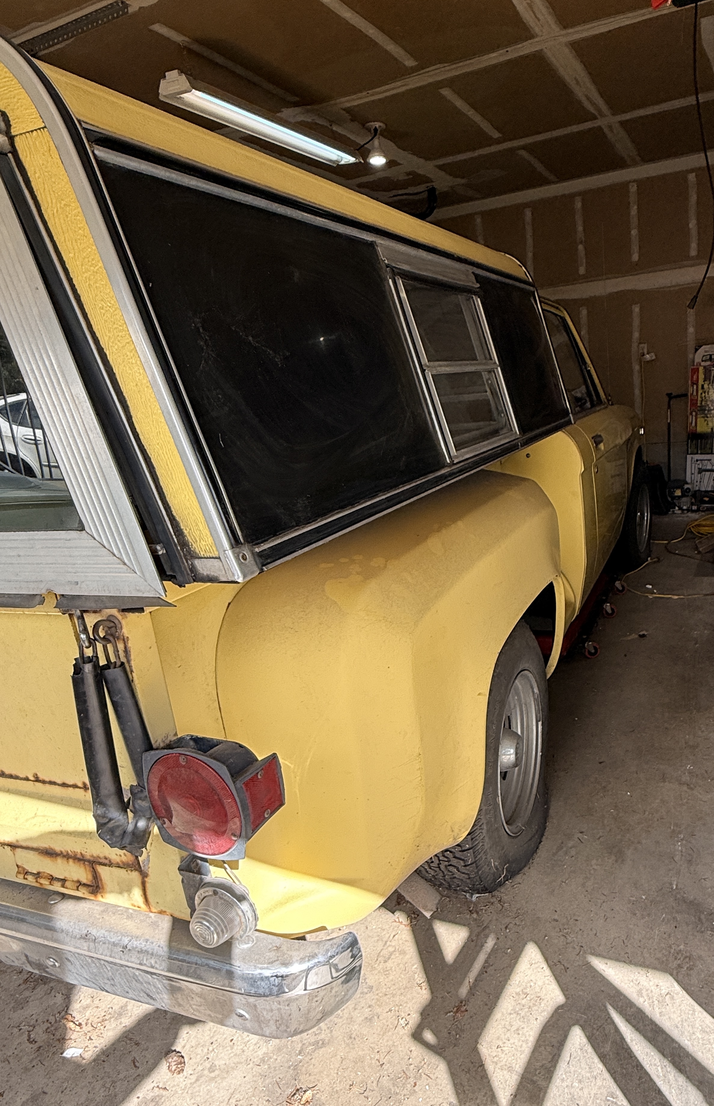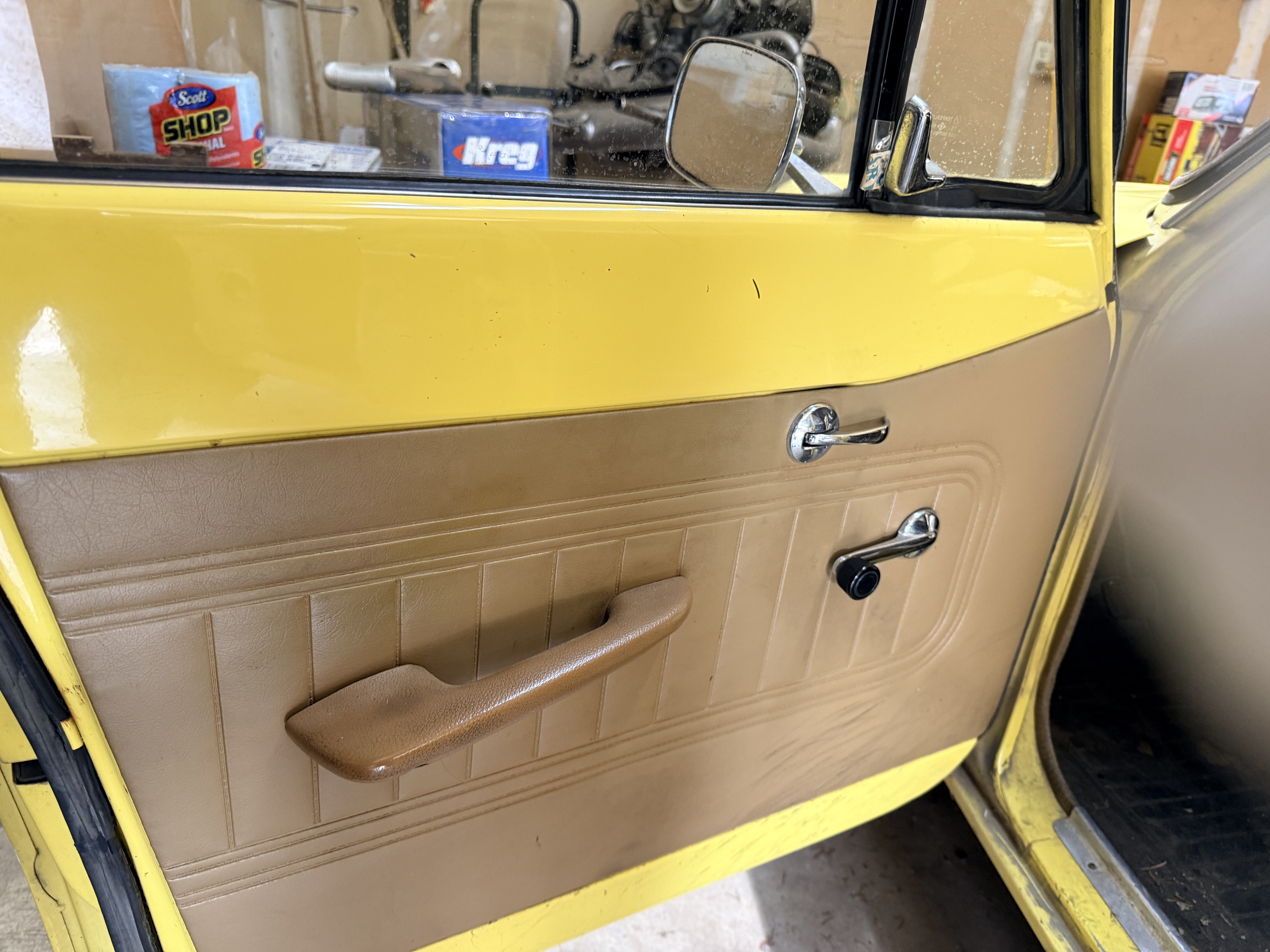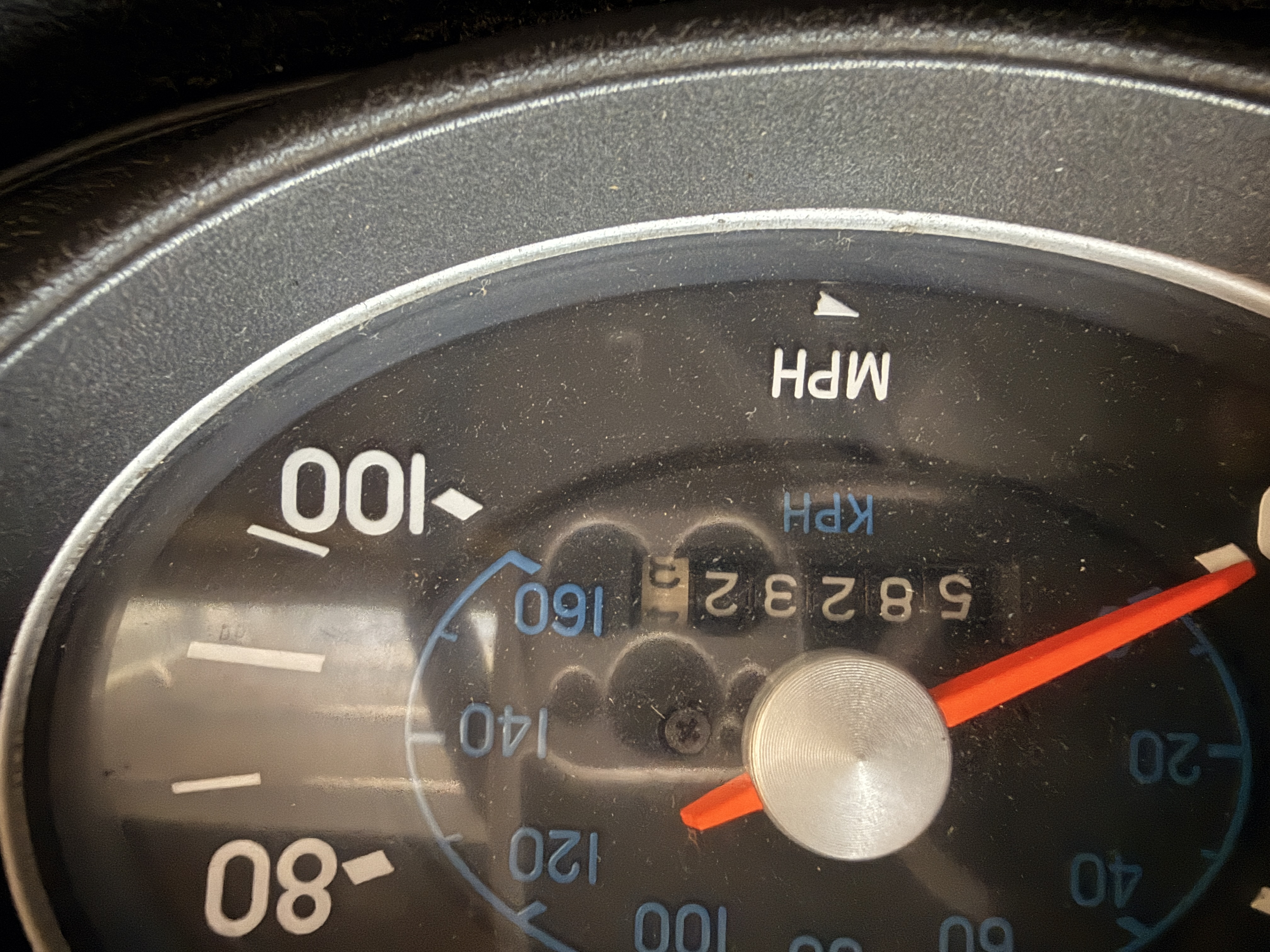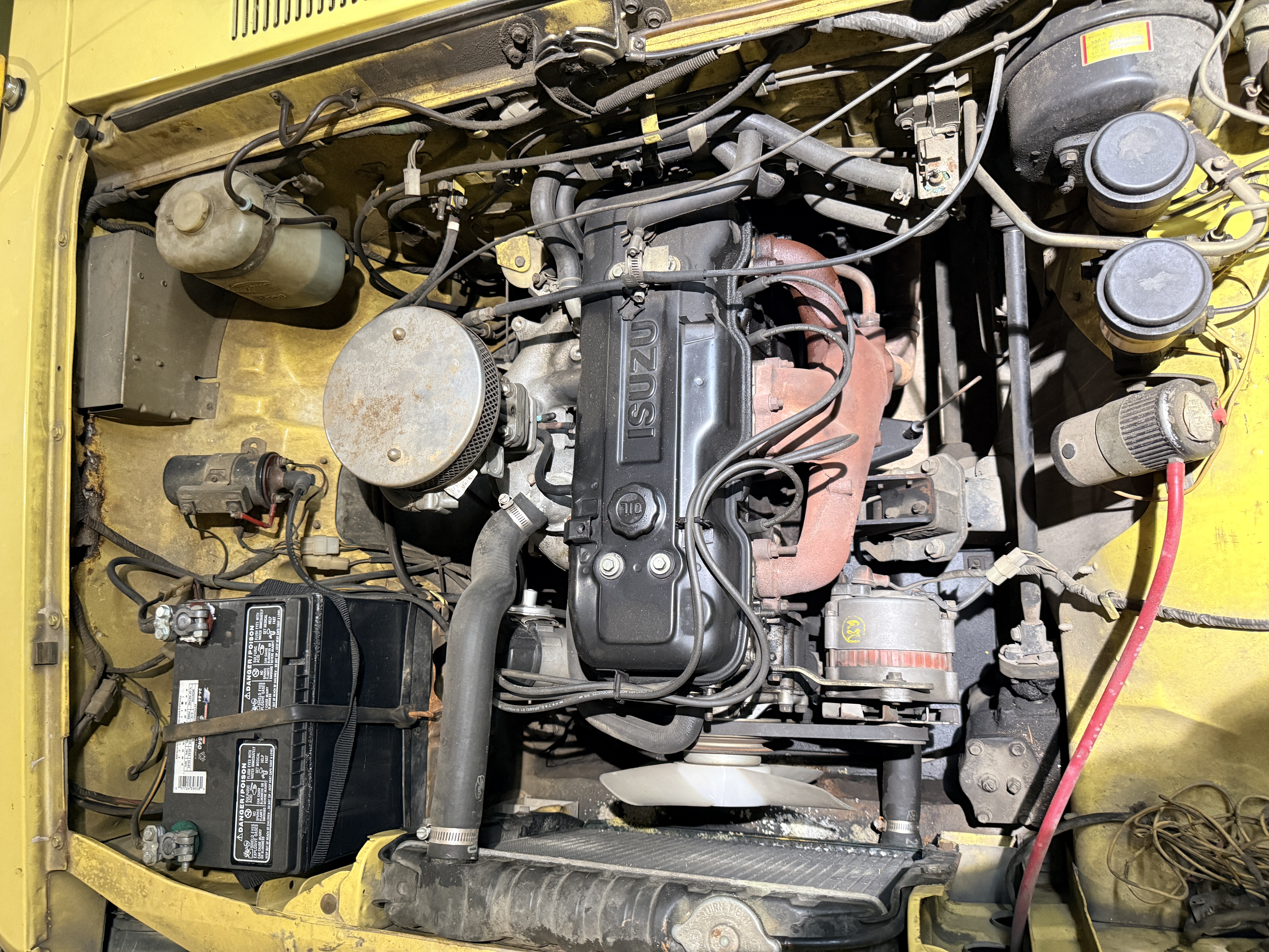 Garaged – This 1976 Chevrolet LUV is a first-generation light utility vehicle manufactured by Isuzu Motors Ltd. in Japan for Chevrolet. The vehicle is finished in yellow and features a color-matched custom integrated canopy manufactured by International Mfg. Co. in December 1976. The exterior is equipped with a chrome front bumper, a quad-headlight grille with a central Chevrolet bowtie emblem, LUV fender badges, and a tailgate featuring black Chevrolet block lettering. It rides on steel wheels fitted with Supreme star-logo center caps and Yokohama All Season M+S tires. The interior is trimmed in tan and brown vinyl and features a bench seat, a four-speed manual transmission with a floor-mounted shifter, and a Sanyo radio with a full auto eject cassette player. The dashboard includes a 100-mph speedometer with a five-digit odometer and gauges for fuel level and coolant temperature. Identification is provided by a chassis plate in the door jamb listing VIN CLN1358253134 and a secondary manufacturer decal from International Mfg. Co. The lot includes two keys and vintage Washington state license plates.