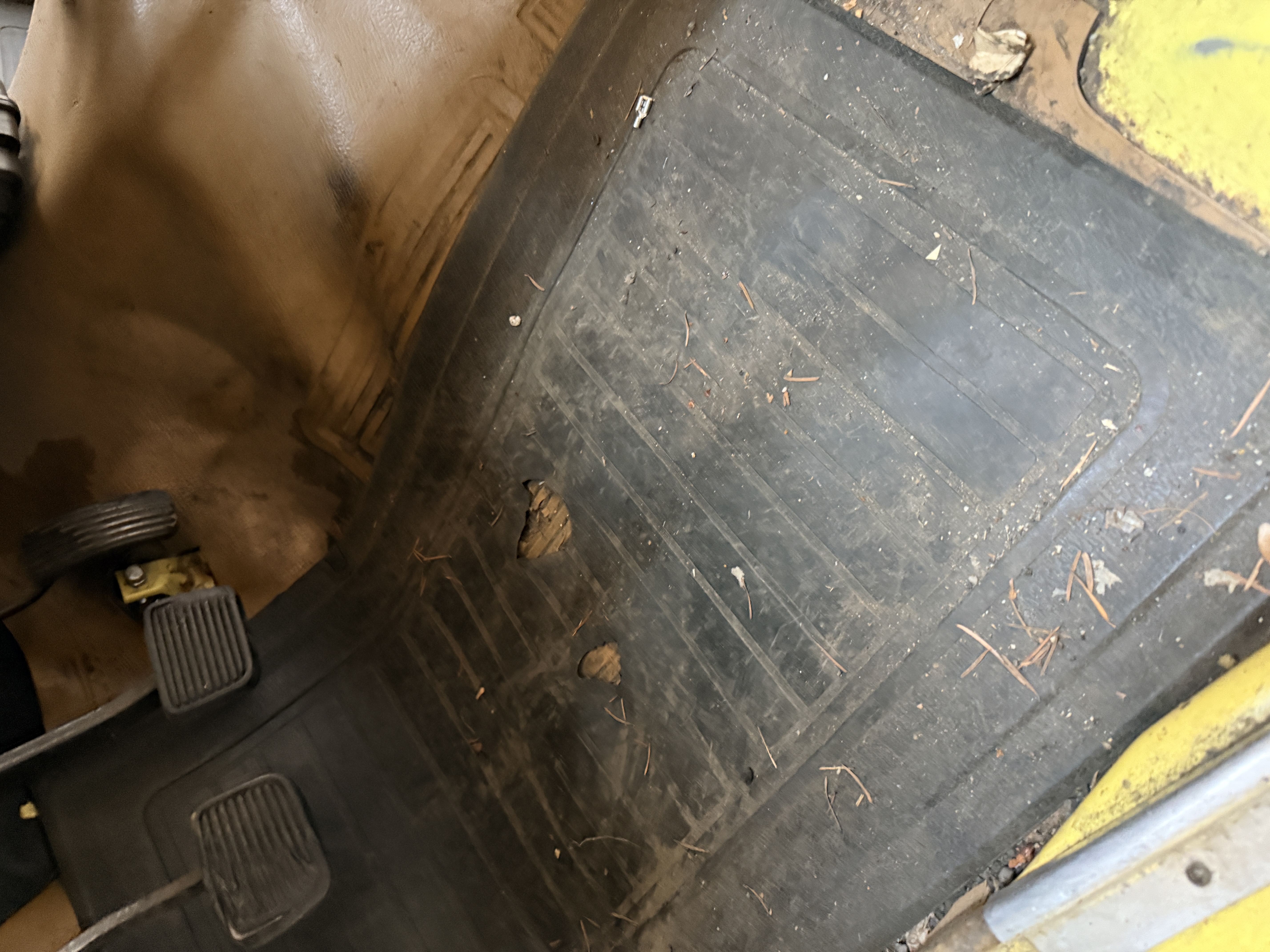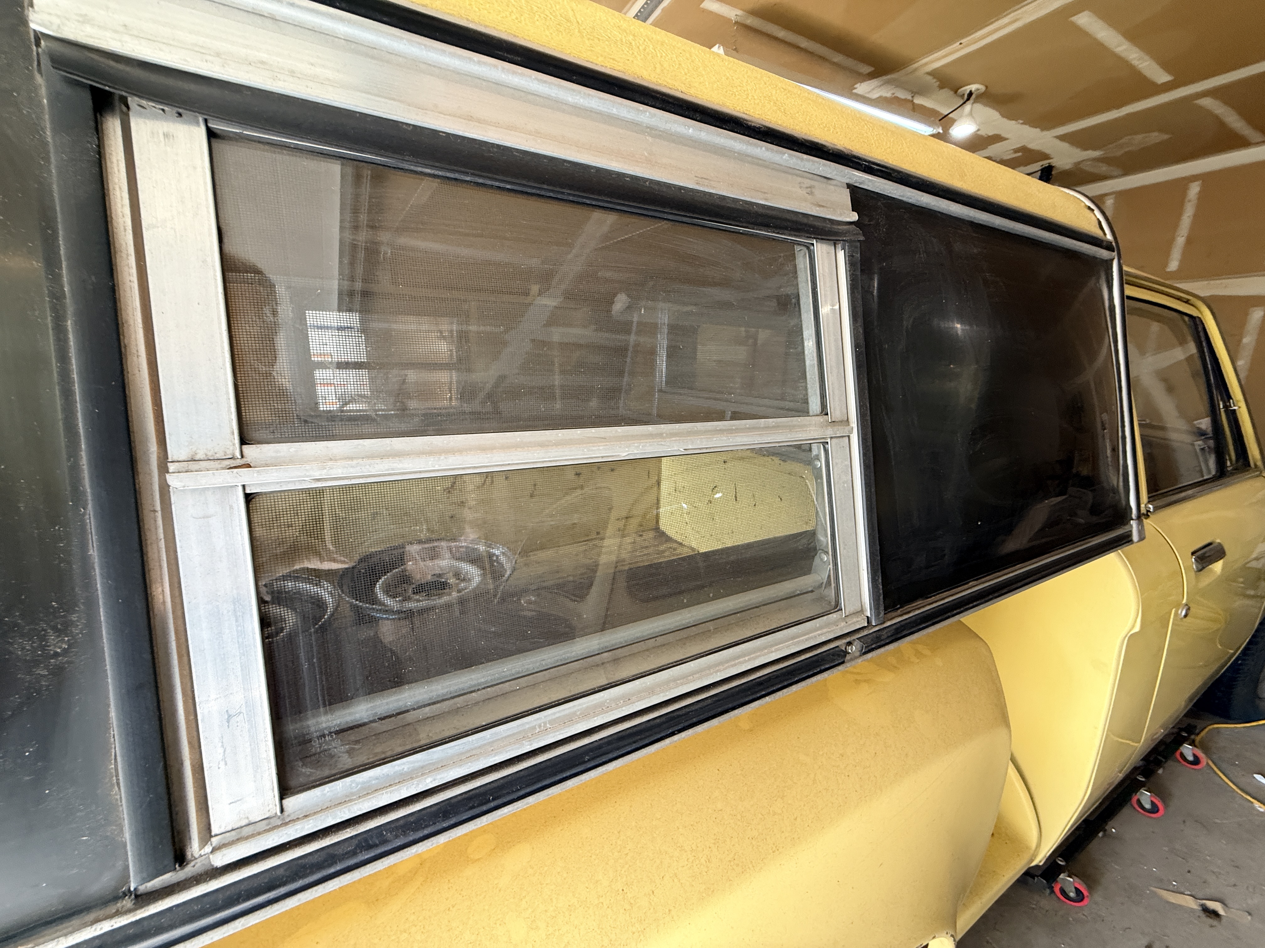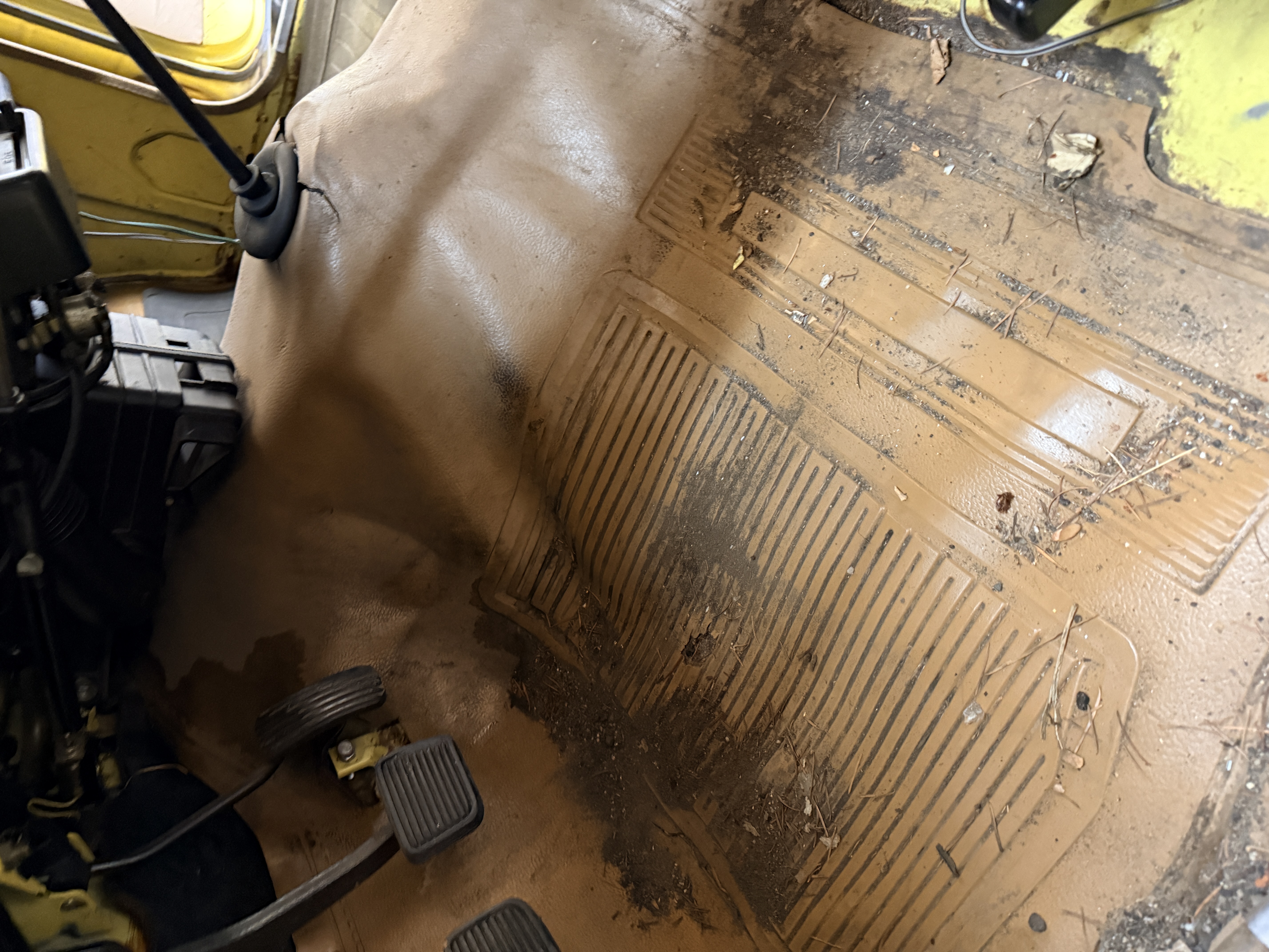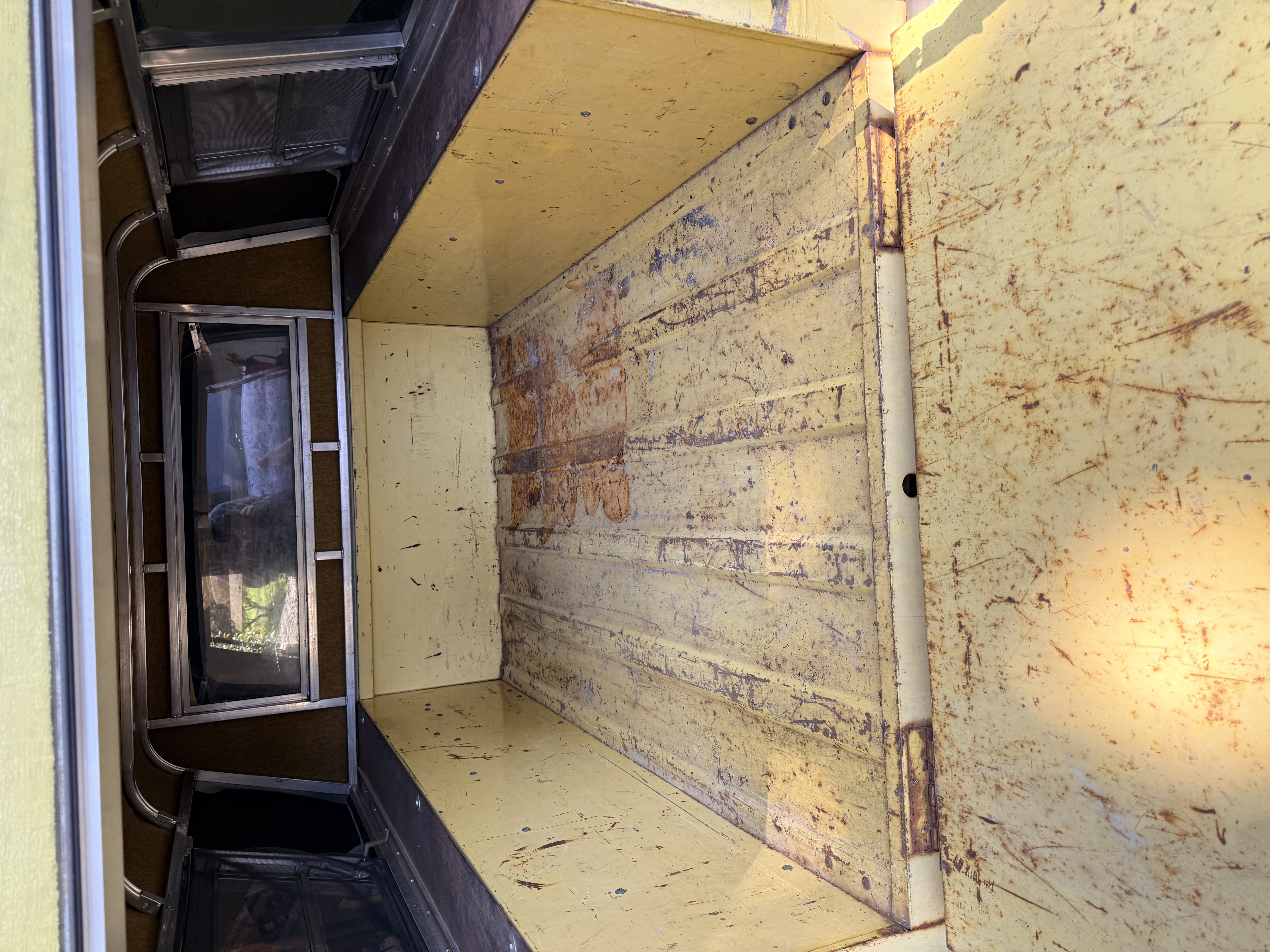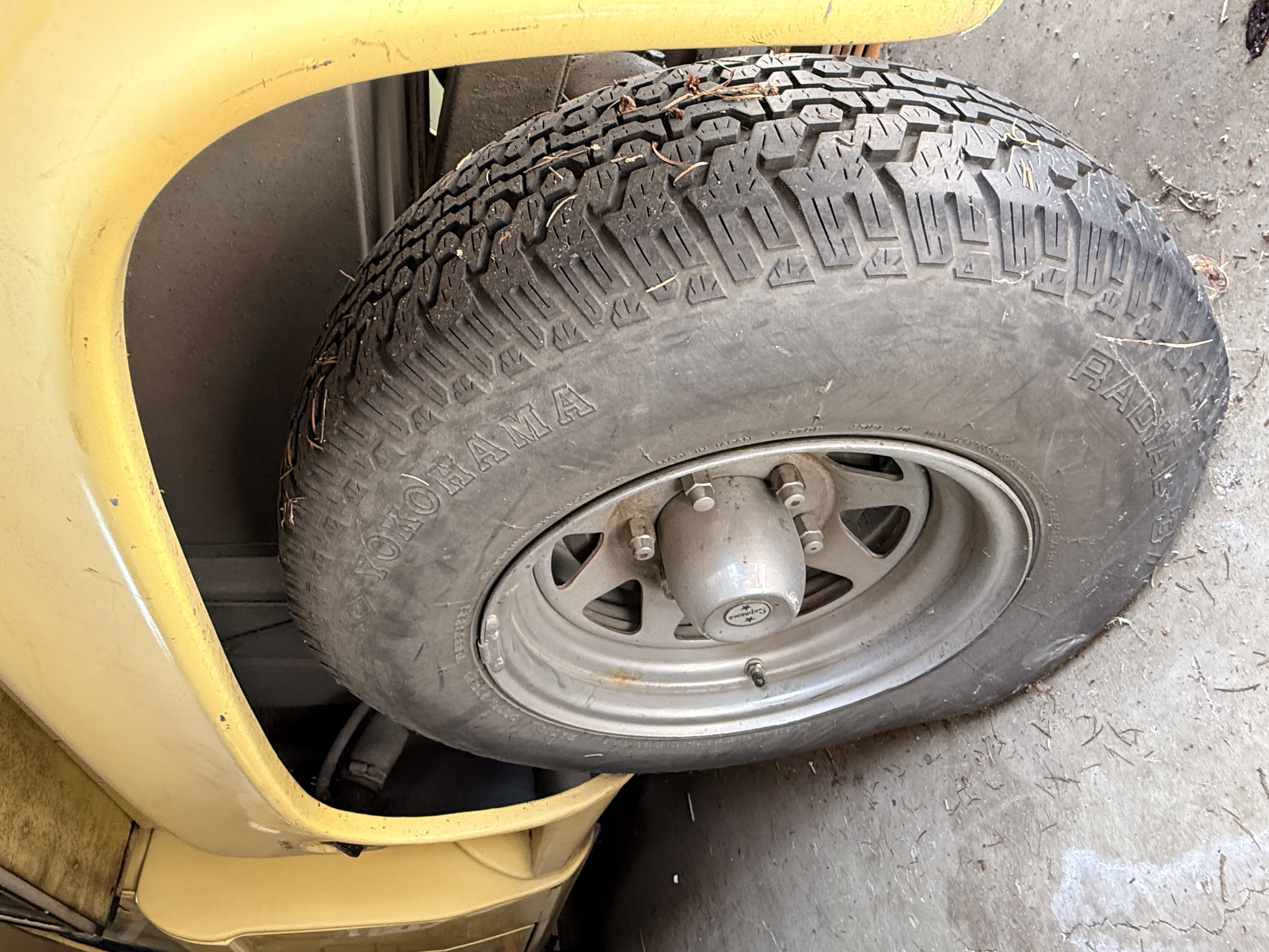 This vehicle is in unrestored and very original condition - owned by a Boeing engineer, it was kept inside his garage and worked on by him - it was his favorite vehicle for fishing, camping and hunting for many years. It has not been driven in awhile, so we did not attempt to start it up. The tires are low - the interior had a slip cover on the seats, but we removed it to show you the original seat and current condition. The windshield is cracked on the driver side. The custom canopy exhibits weathered rubber seals and a deteriorating textured finish. The interior is in poor condition; the vinyl bench seat is heavily torn with exposed foam and springs, the dashboard is cracked near the defrost vents, and the floor mats are worn through. The engine and mechanical systems have not been tested. Tires are aged and mismatched, with the driver-side rear tire being completely flat from just sitting inside the garage. Please review all images for condition and reach out with questions - we will do our best to answer them.