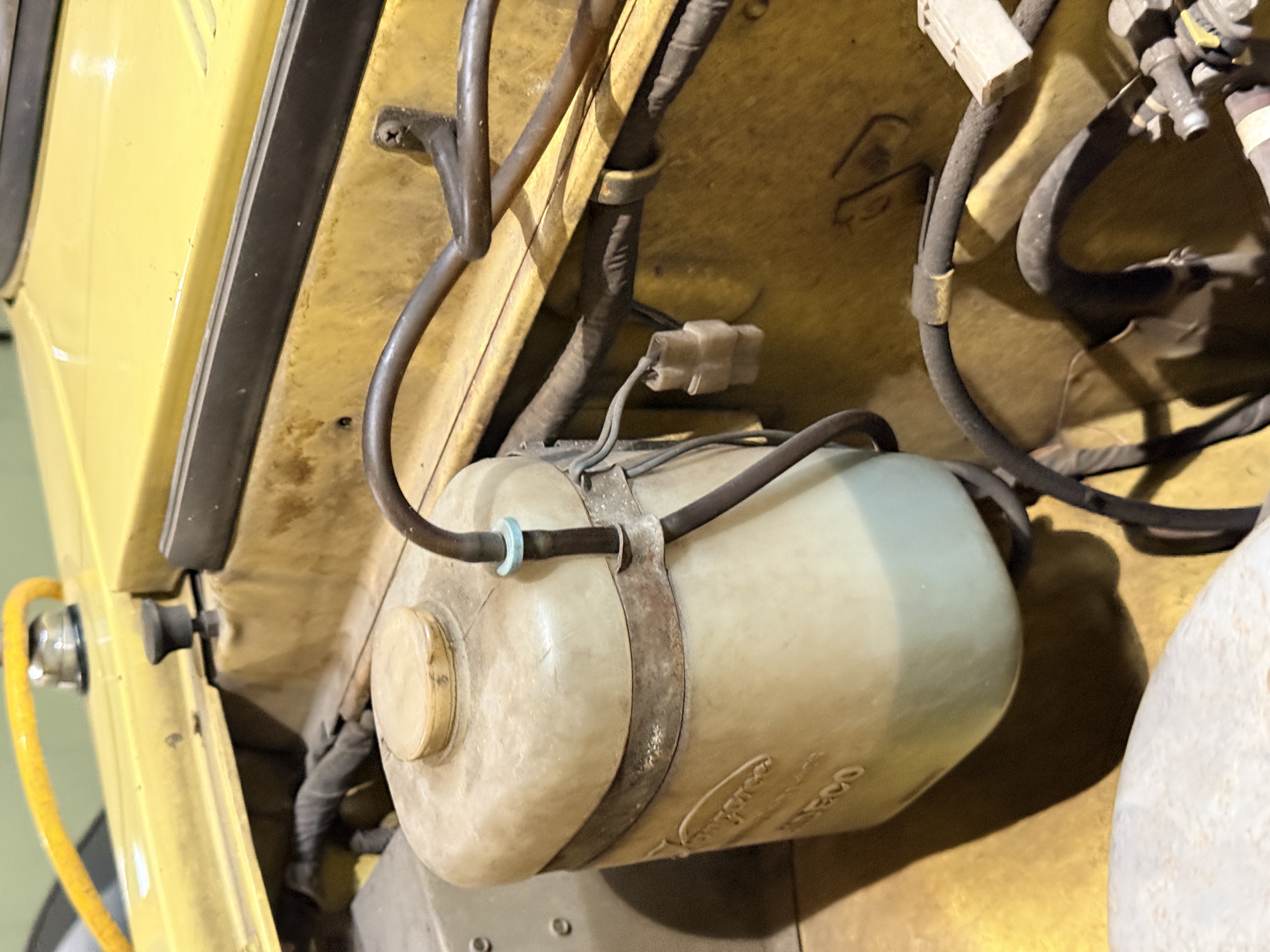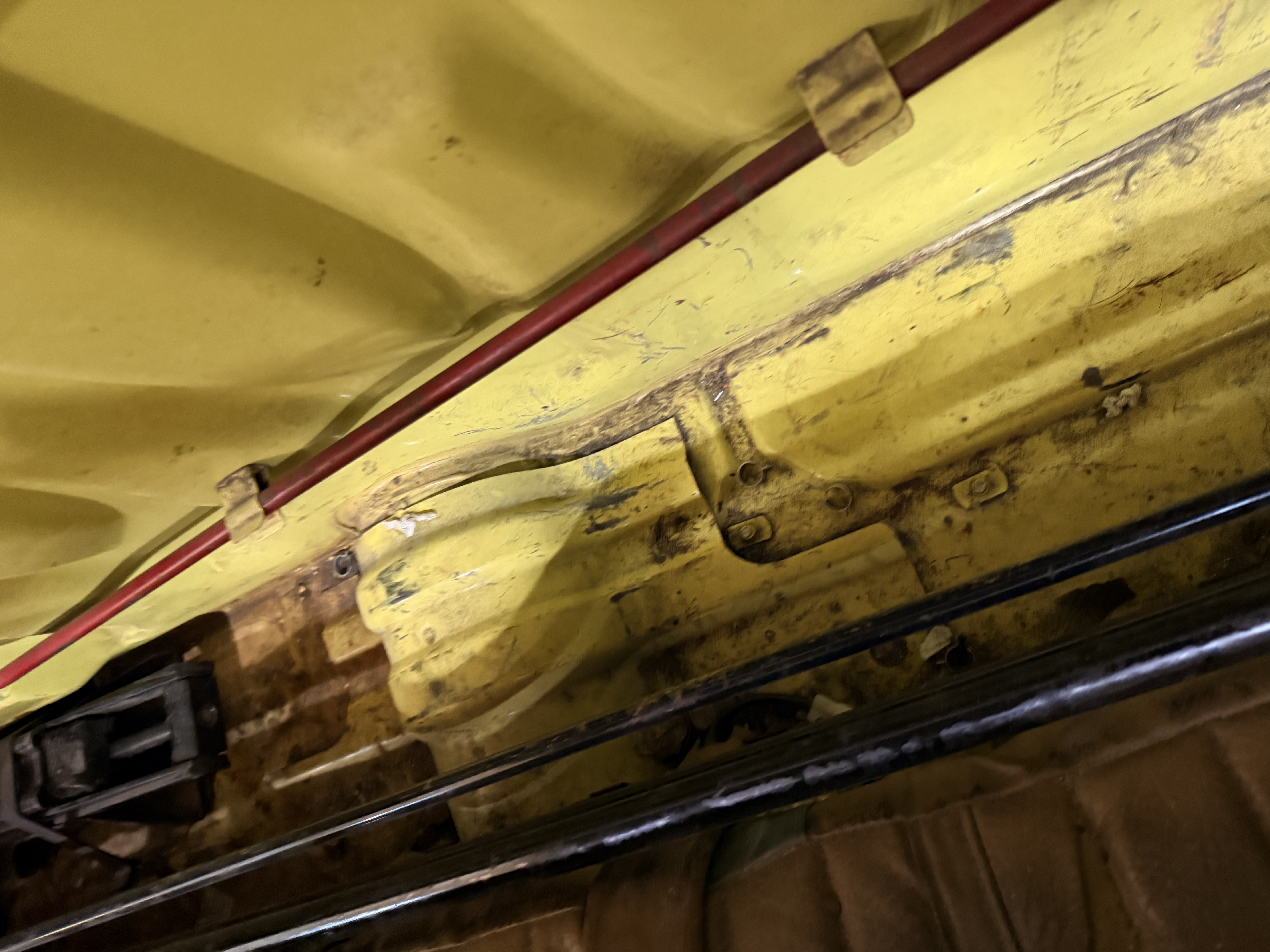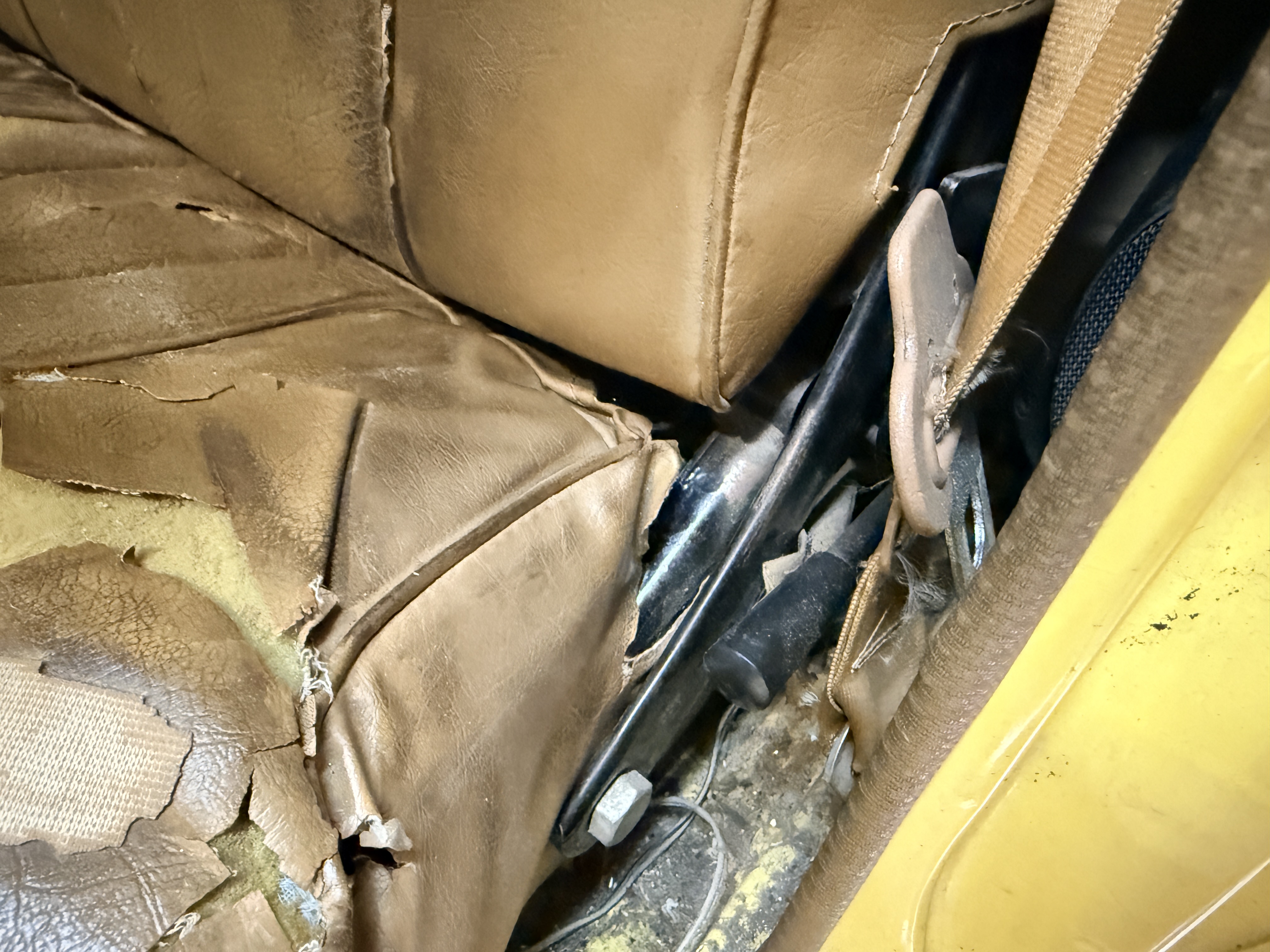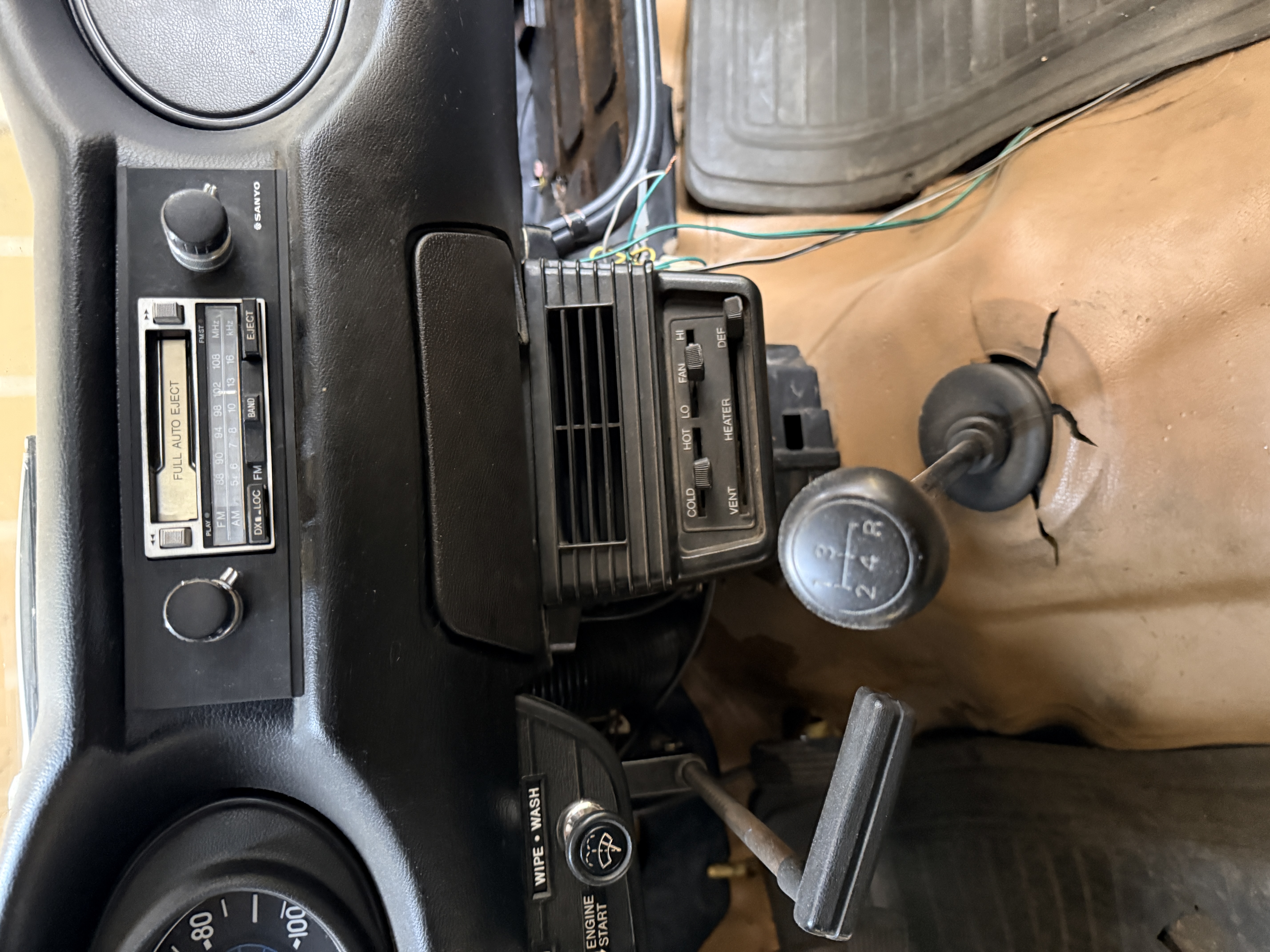 This vehicle is in unrestored and very original condition - owned by a Boeing engineer, it was kept inside his garage and worked on by him - it was his favorite vehicle for fishing, camping and hunting for many years. It has not been driven in awhile, so we did not attempt to start it up. The tires are low - the interior had a slip cover on the seats, but we removed it to show you the original seat and current condition. The windshield is cracked on the driver side. The custom canopy exhibits weathered rubber seals and a deteriorating textured finish. The interior is in poor condition; the vinyl bench seat is heavily torn with exposed foam and springs, the dashboard is cracked near the defrost vents, and the floor mats are worn through. The engine and mechanical systems have not been tested. Tires are aged and mismatched, with the driver-side rear tire being completely flat from just sitting inside the garage. Please review all images for condition and reach out with questions - we will do our best to answer them.
