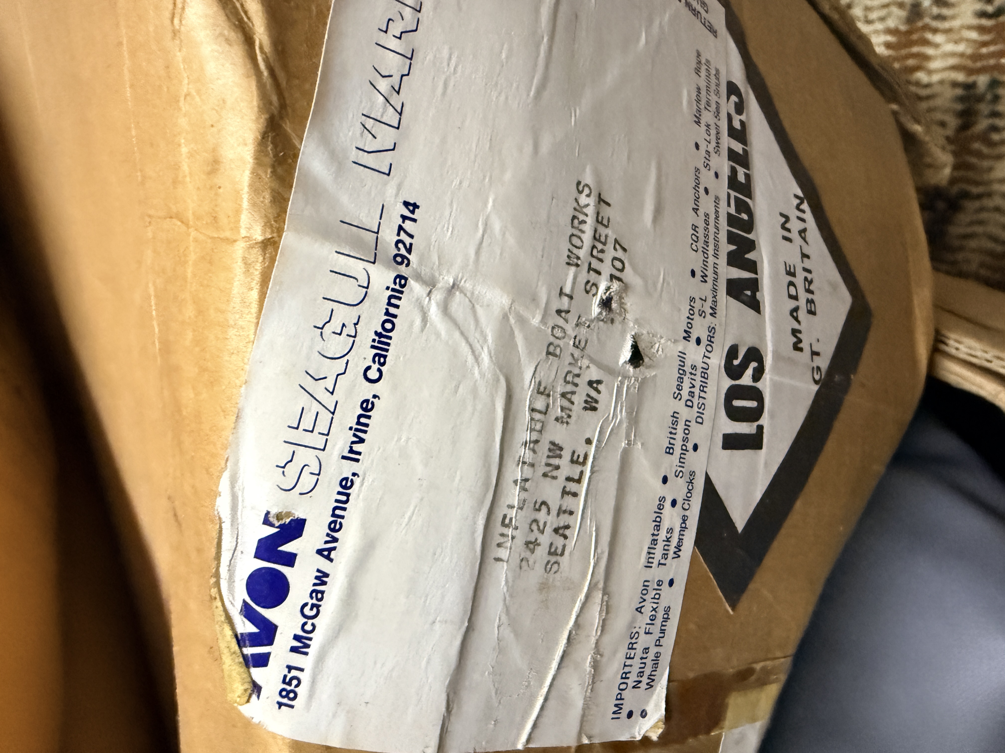 All inflatable components are sold deflated and in as-is condition. The vessels have not been tested for leaks, valve integrity, or general airworthiness. The Avon boat is stored in its original cardboard box, which shows significant wear, tearing, and age-related degradation. The Sevylor boat exhibits surface dirt and minor cosmetic scuffs consistent with long-term storage. The varnished floorboards show minor surface scratches but appear structurally sound. The outboard motor and Oceanic pressure gauge are untested and their mechanical or electronic operational status is unknown. Professional inspection is recommended before any attempt at marine use. *The estate told us that the boat was used no more than 2 times. In like new condition, but as we said, we did not test the boat. There is a title to go with the boat.